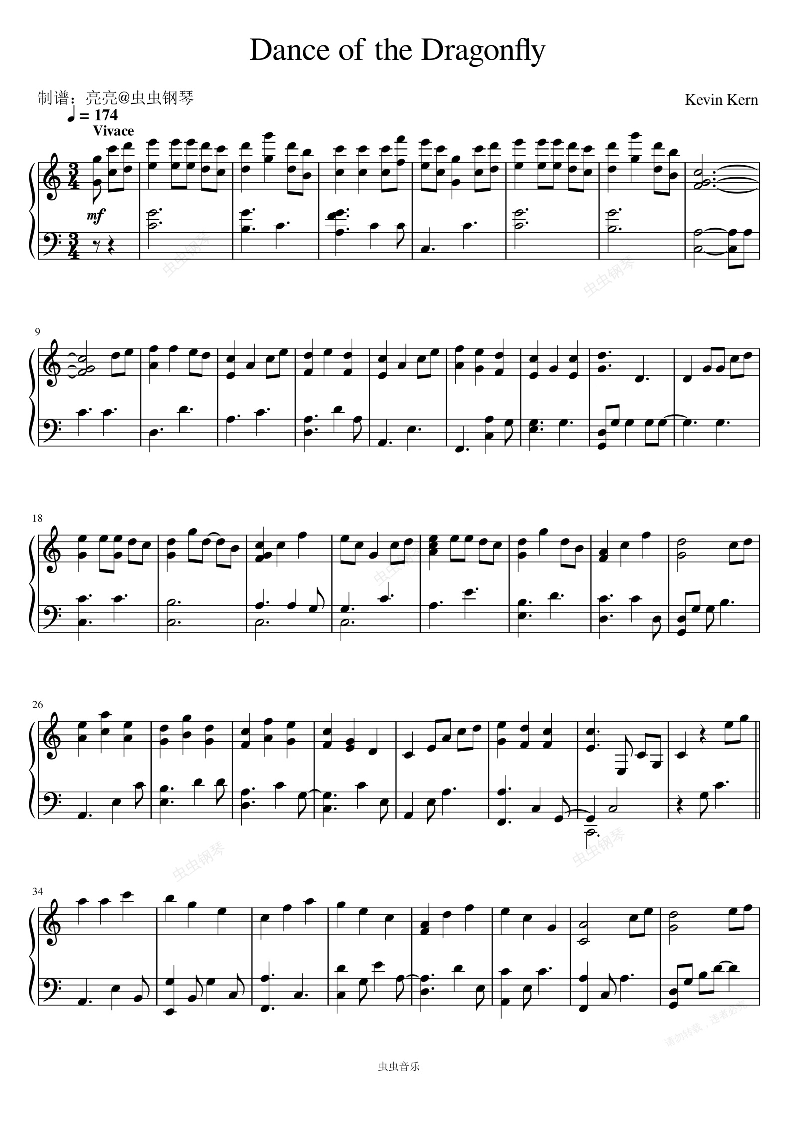 钢琴谱:Dance of the Dragonfly - Kevin Kern