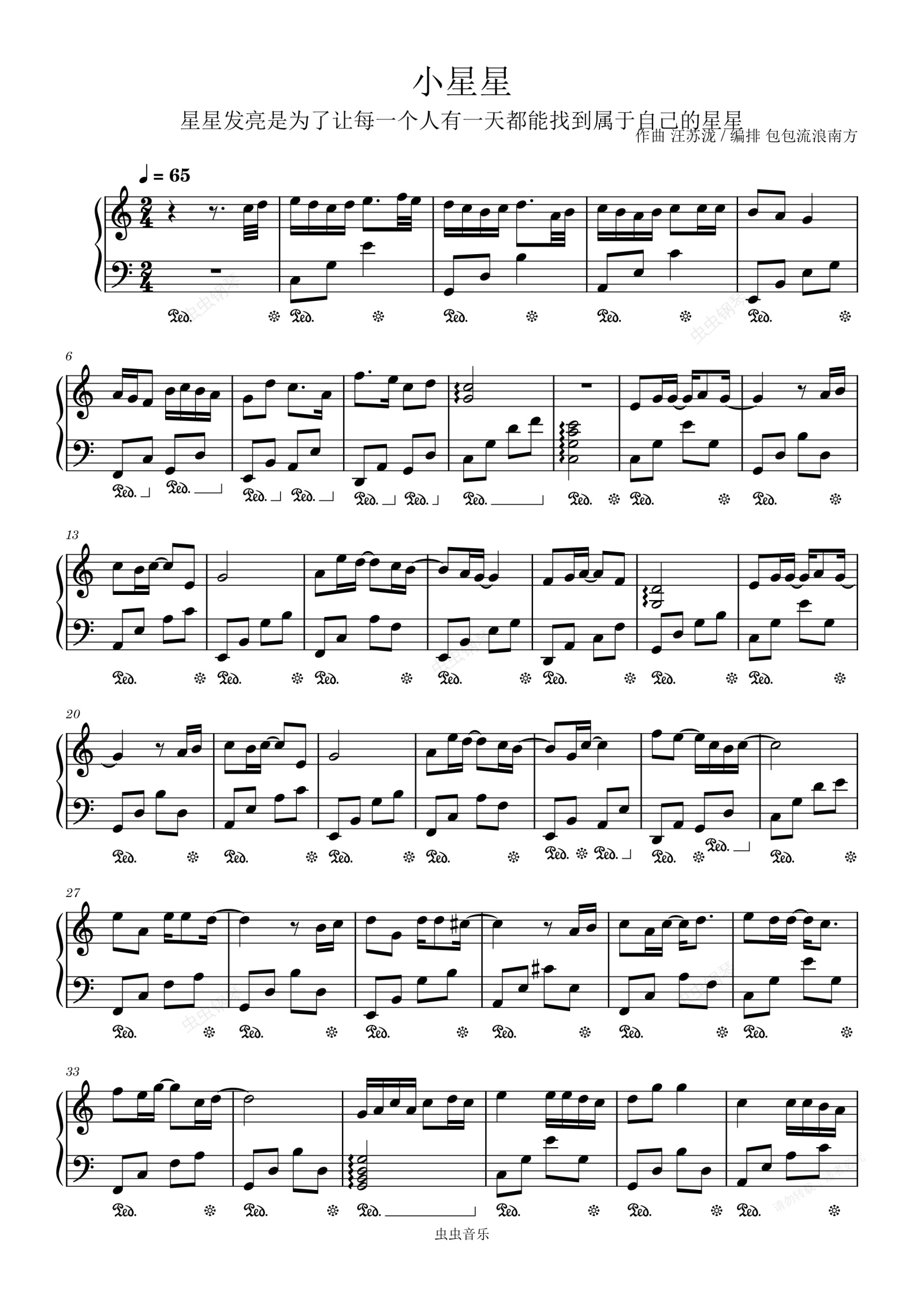 钢琴谱:小星星-汪苏泷(完美独奏版)