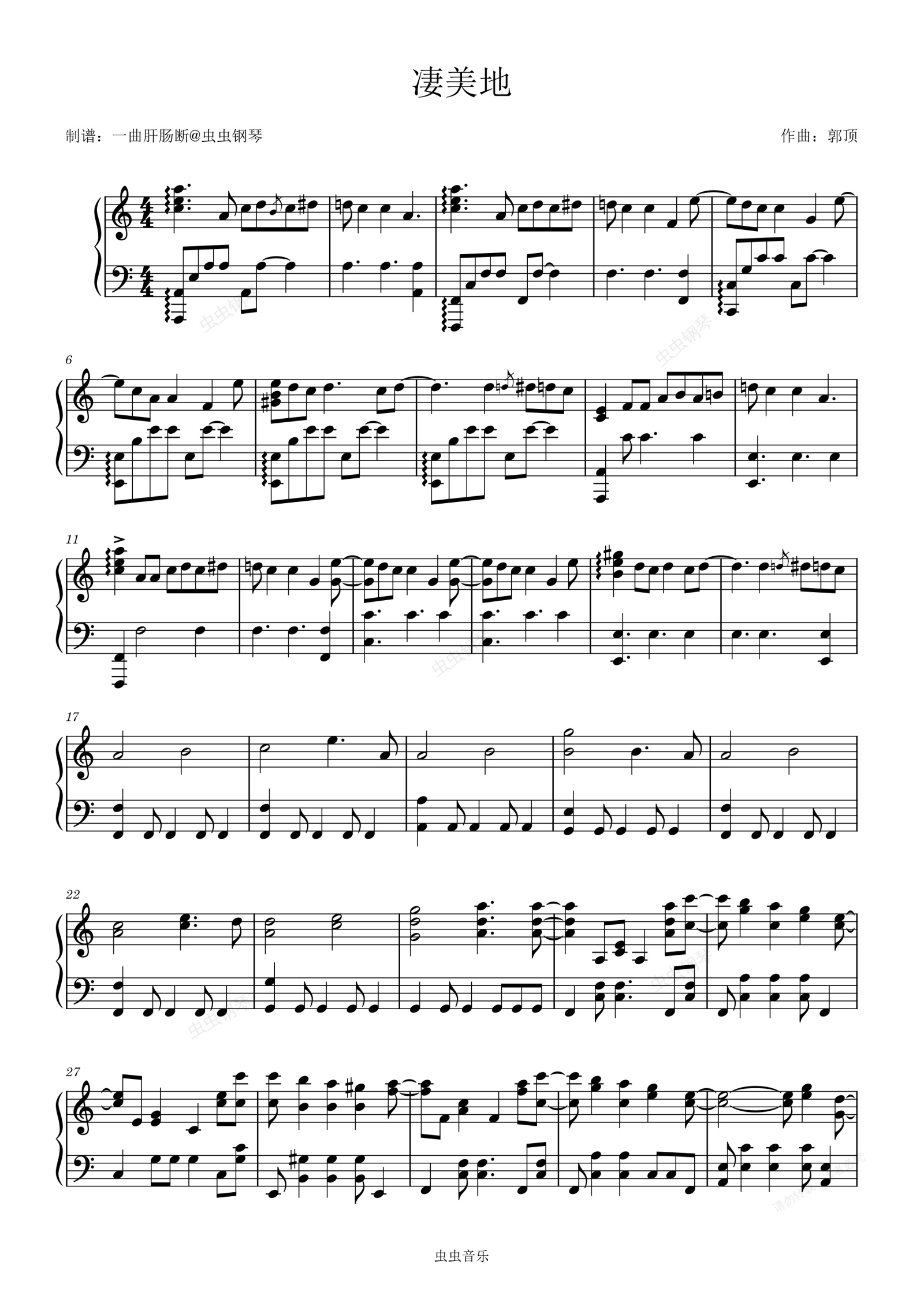 钢琴谱:凄美地 极致还原版~