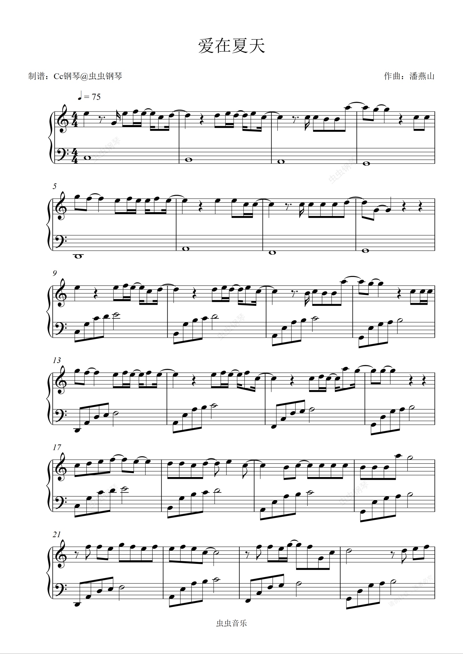 钢琴谱:爱在夏天 C调 好听易上手