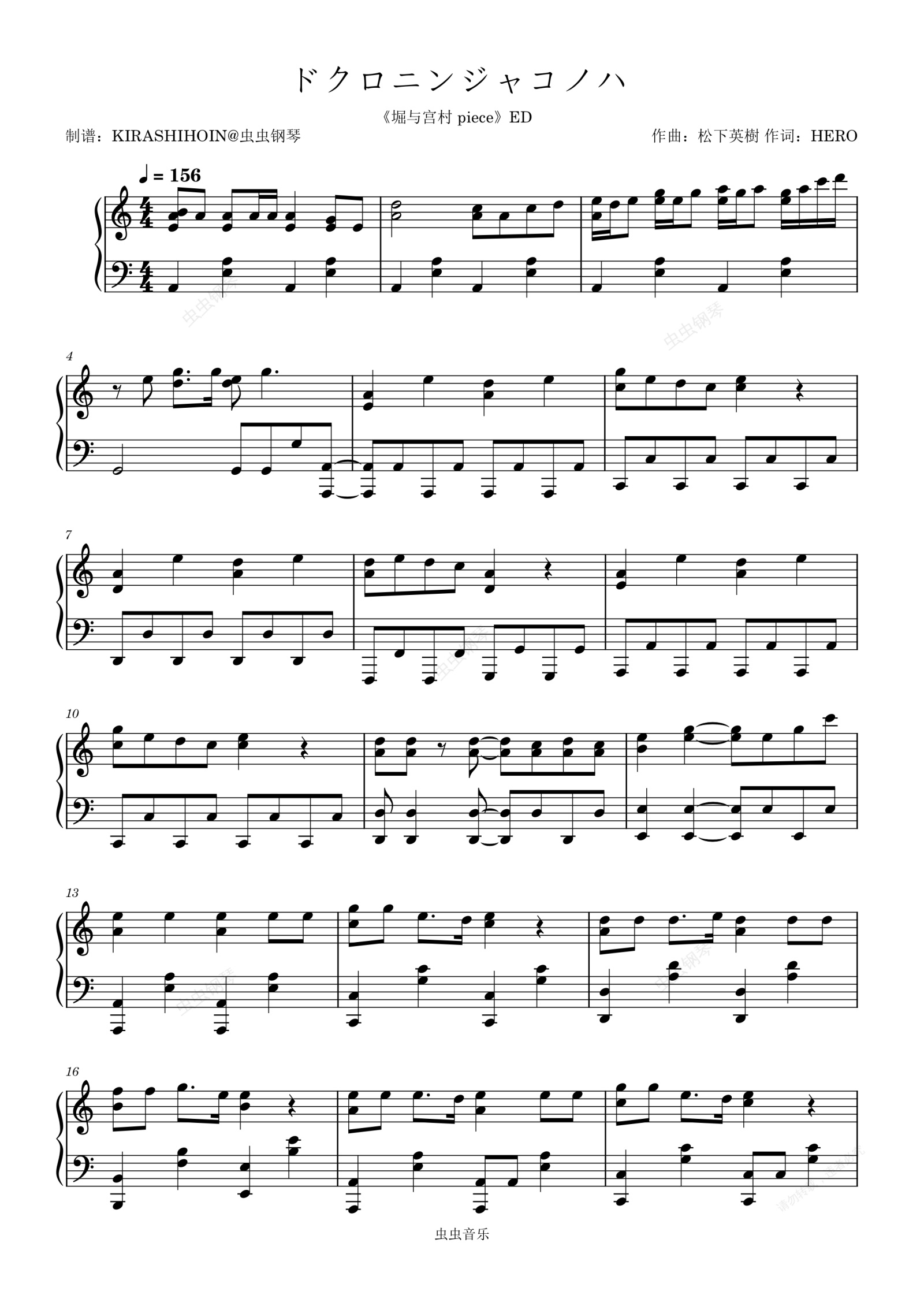 钢琴谱:ドクロニンジャコノハ(《堀与宫村 piece》ED/片尾曲)