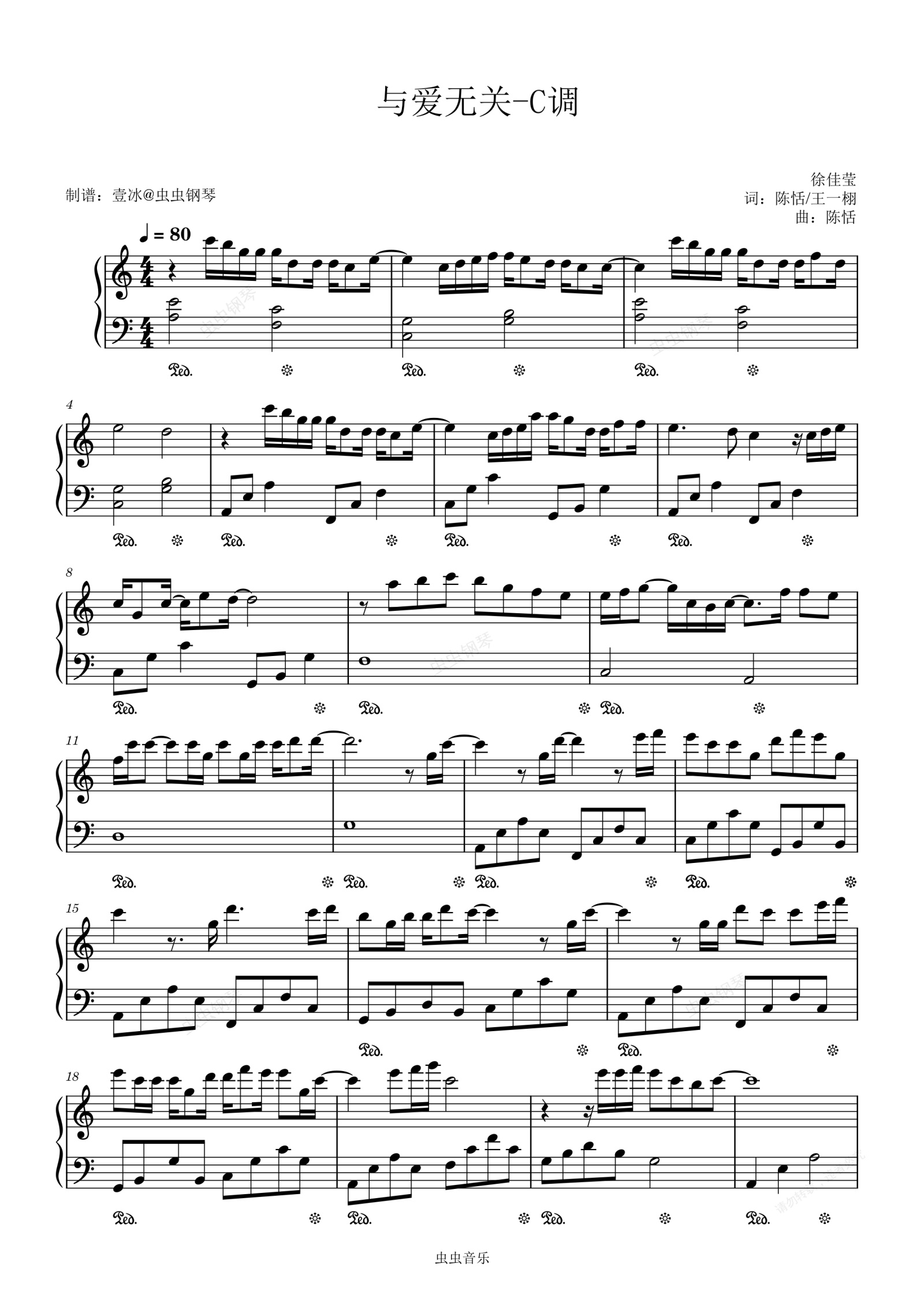 钢琴谱:与爱无关 (《七时吉祥》剧集自爱勇气曲) - C调