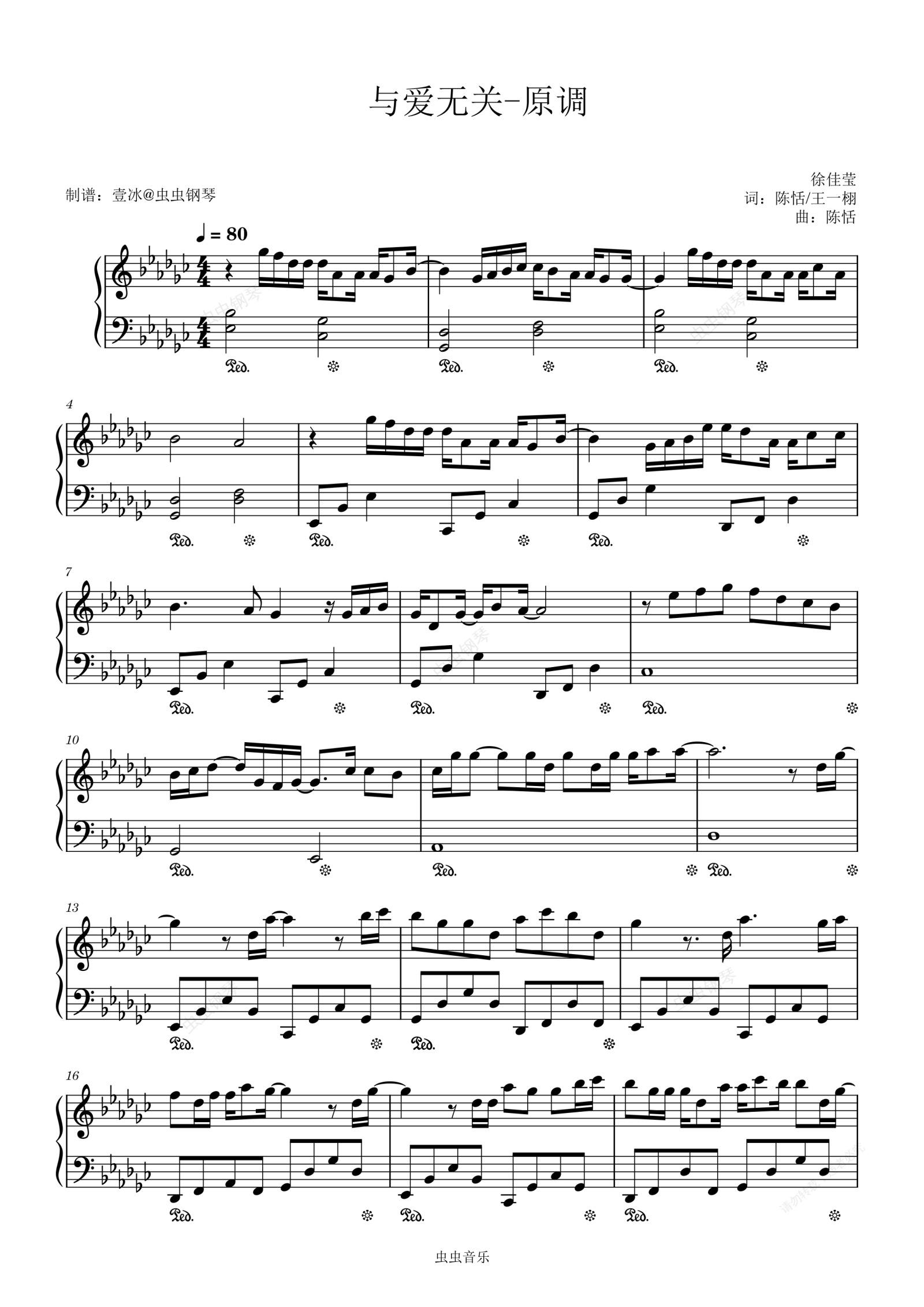 钢琴谱:与爱无关 (《七时吉祥》剧集自爱勇气曲) - 原调