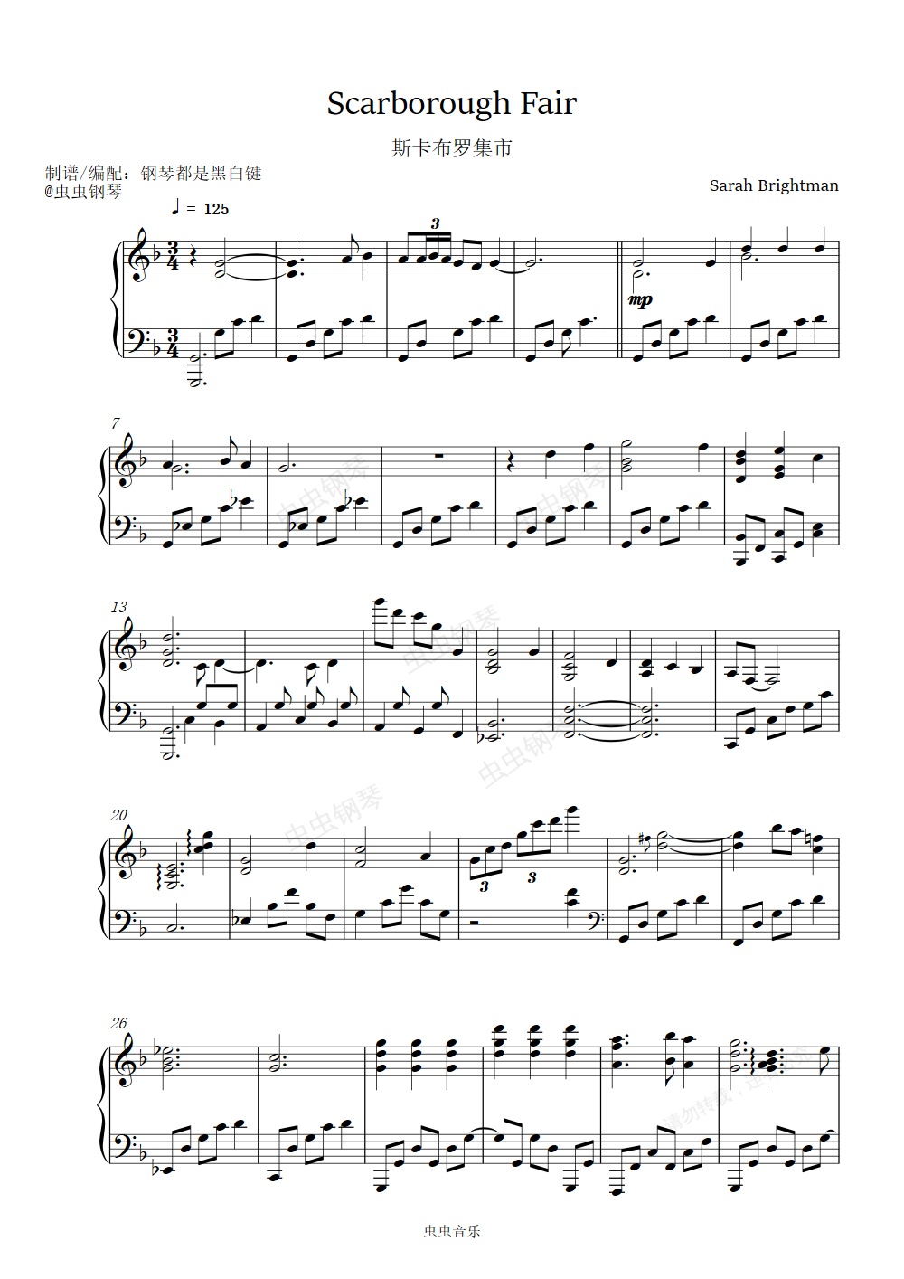钢琴谱:斯卡布罗集市 Scarborough Fair |钢琴演奏版
