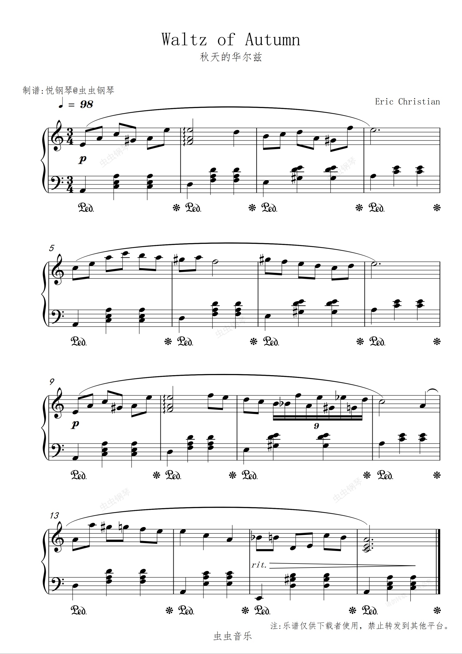 钢琴谱:秋天的华尔兹//Waltz of Autumn-免费乐谱【唯美】
