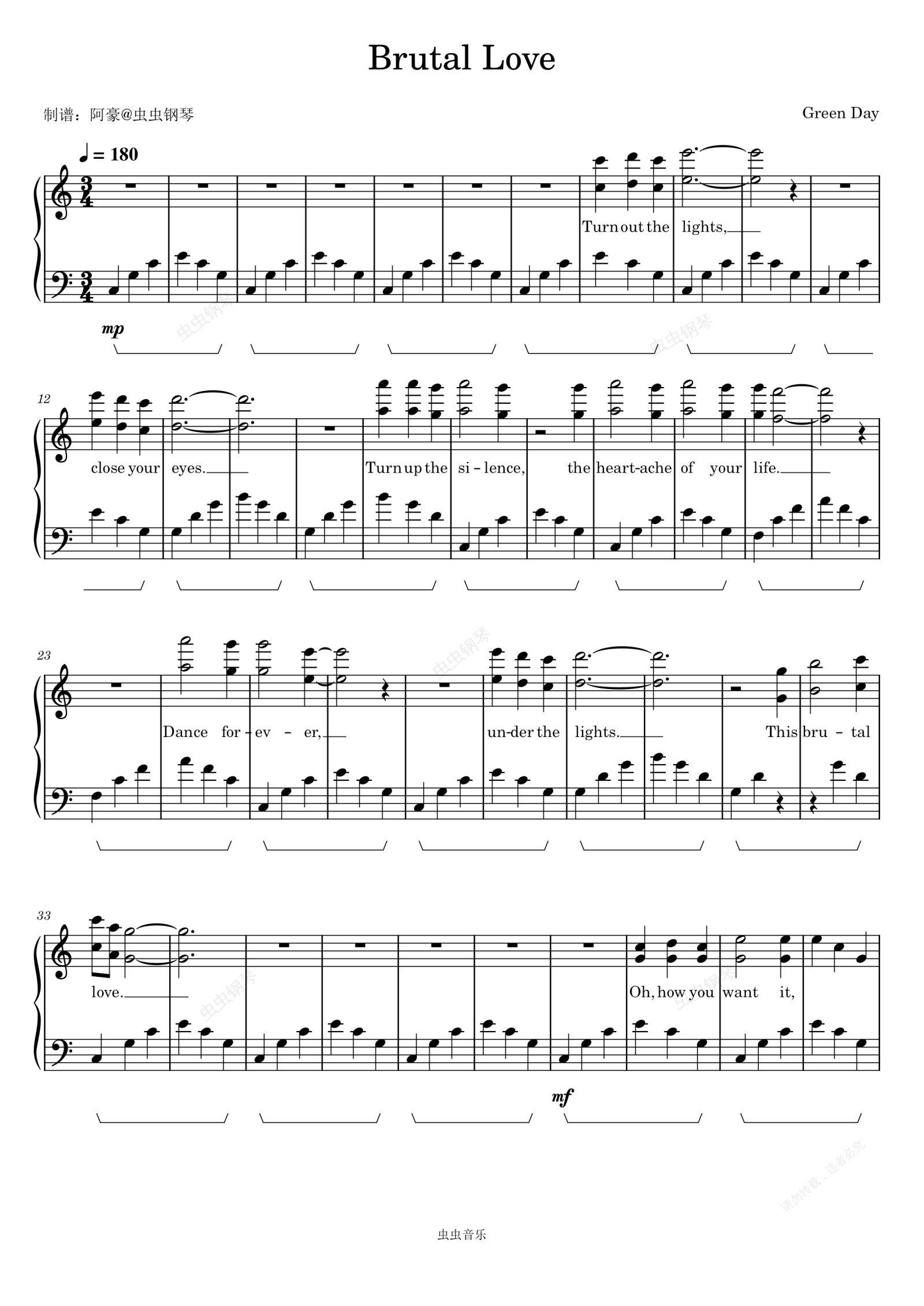 钢琴谱:Brutal Love - Green Day (绿日乐队)