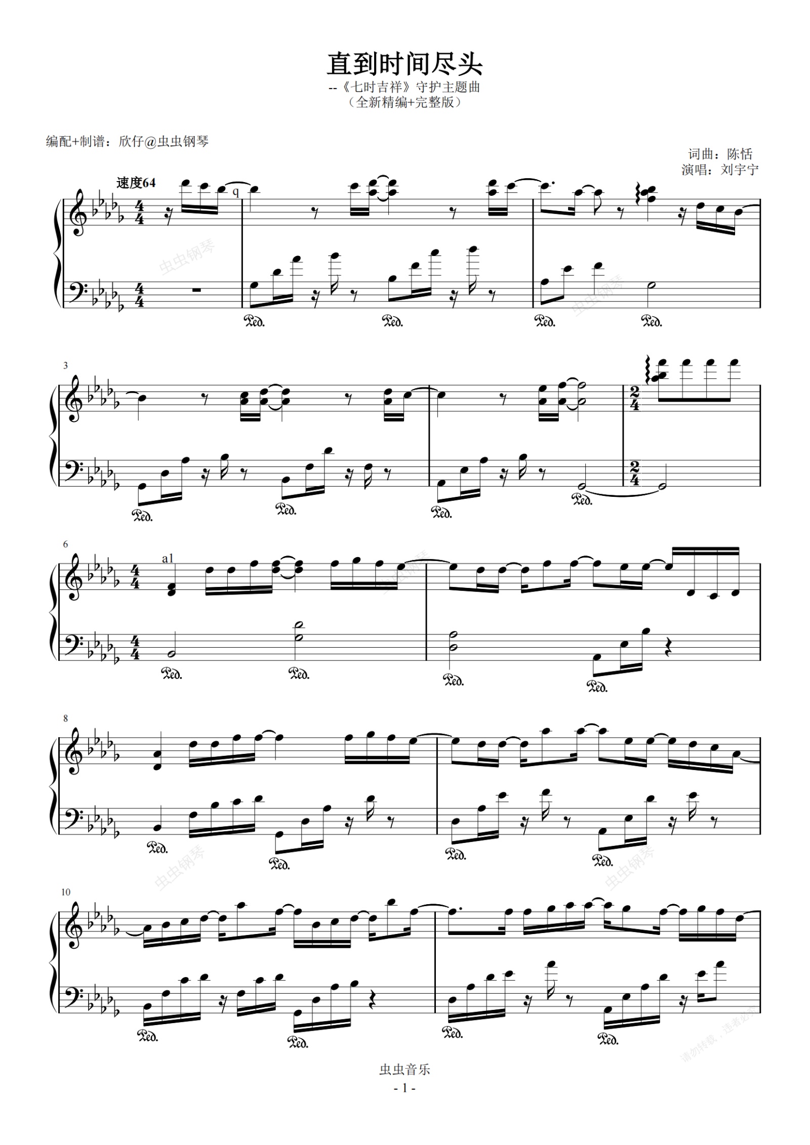 钢琴谱:刘宇宁-降D《直到时间尽头》(《七时吉祥》守护主题曲、完整版)