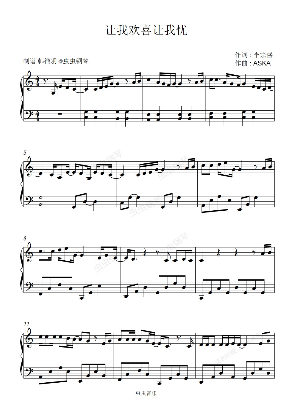 钢琴谱:让我欢喜让我忧 周华健 C调好听易弹