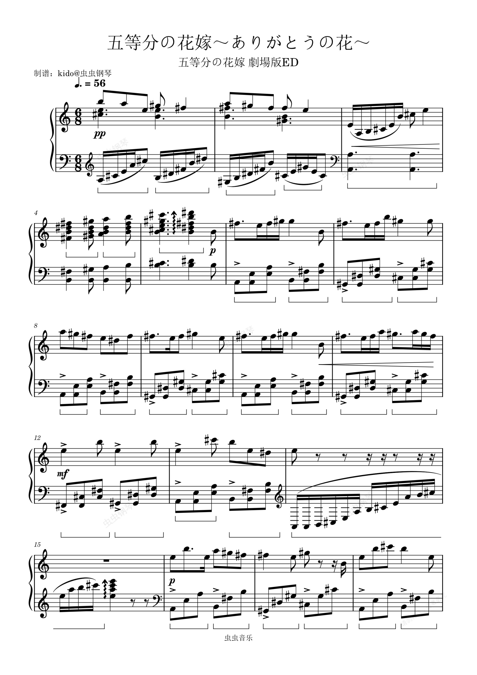 钢琴谱:五等分の花嫁~ありがとうの花~ 中野家の五 子