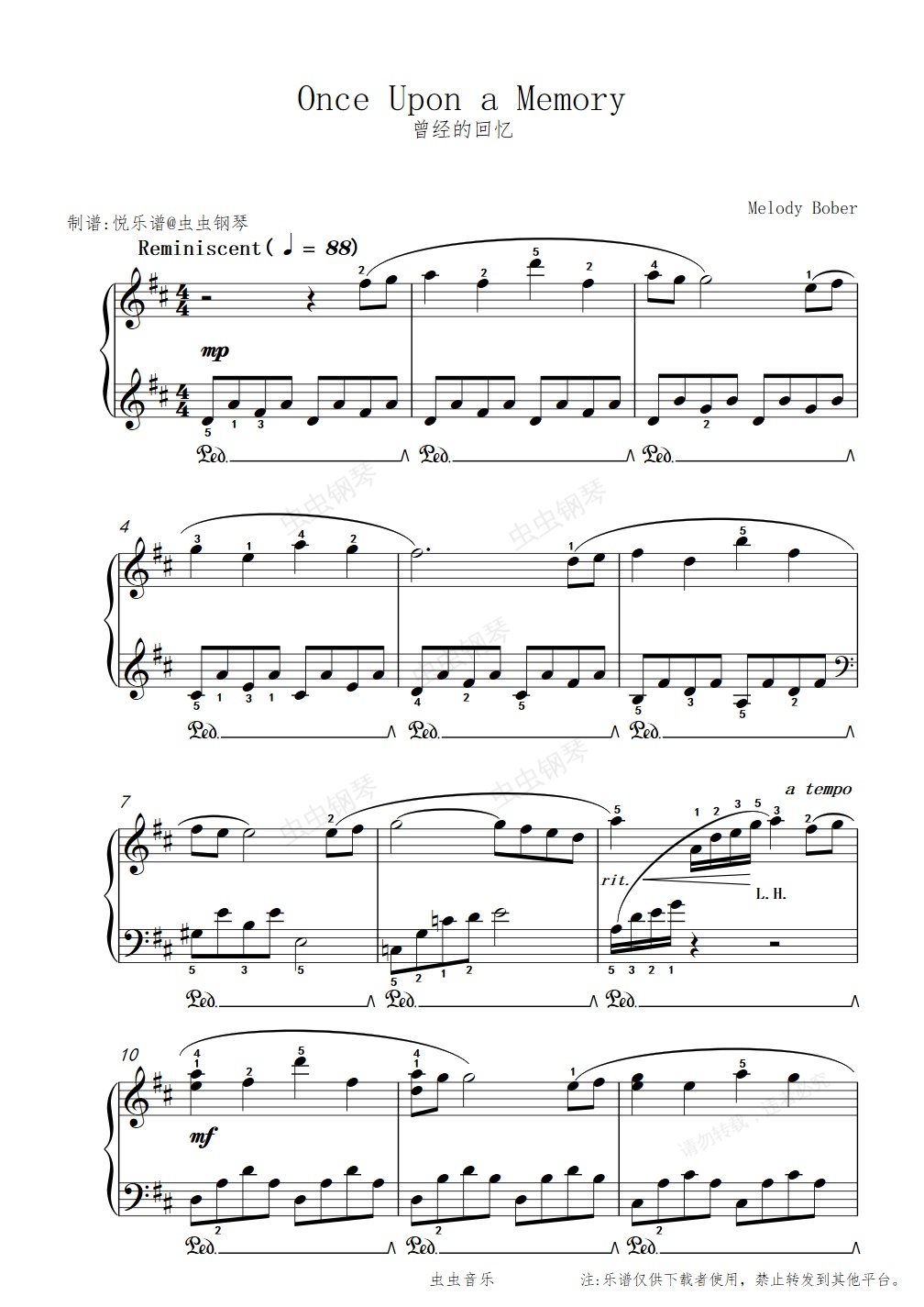 钢琴谱:曾经的回忆//Once Upon a Memory【唯美】