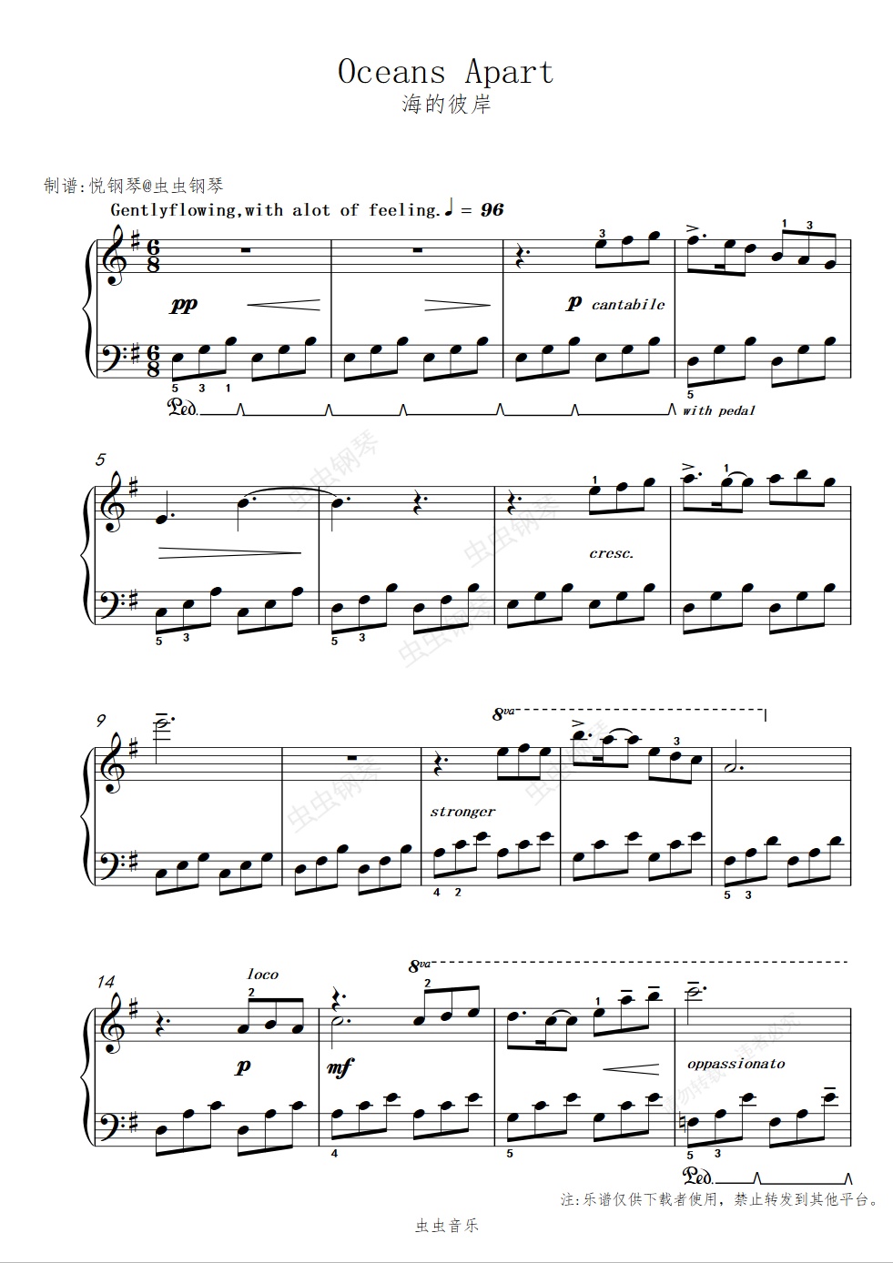 钢琴谱:海的彼岸//Oceans Apart【唯美-向往】