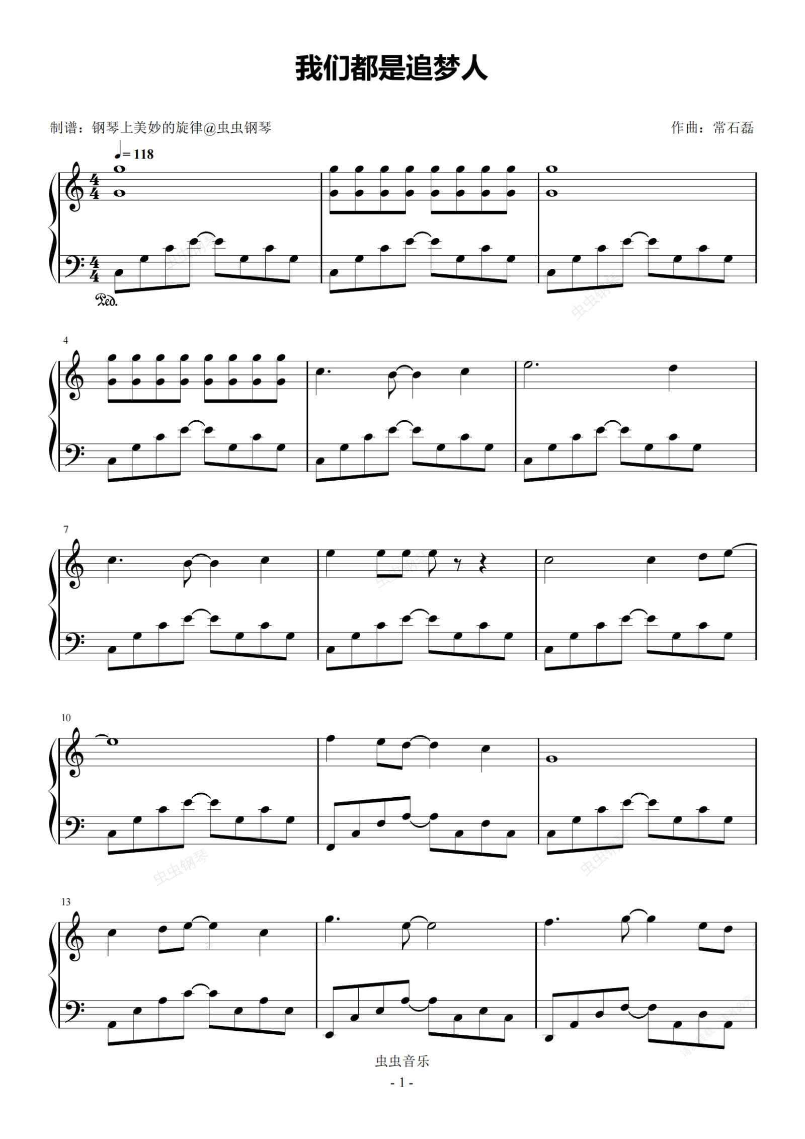 钢琴谱:我们都是追梦人 C调简易版  TFBOY