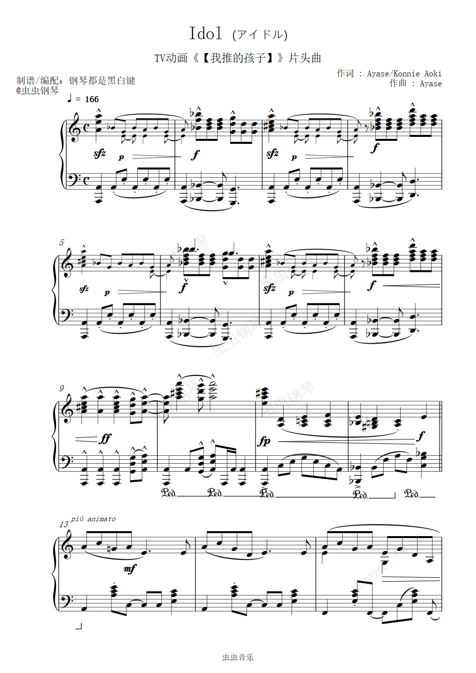 钢琴谱:我推的孩子OP『偶像 / IDOL / アイドル』YOASOBI 【爆燃钢琴演奏版】