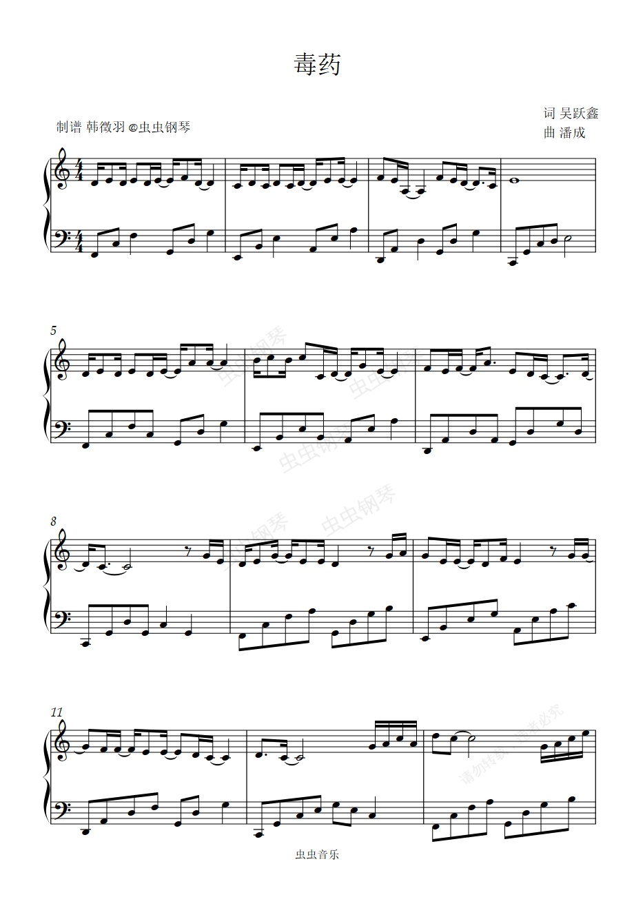 钢琴谱:毒药 Zealot周星星 C调好听易弹版