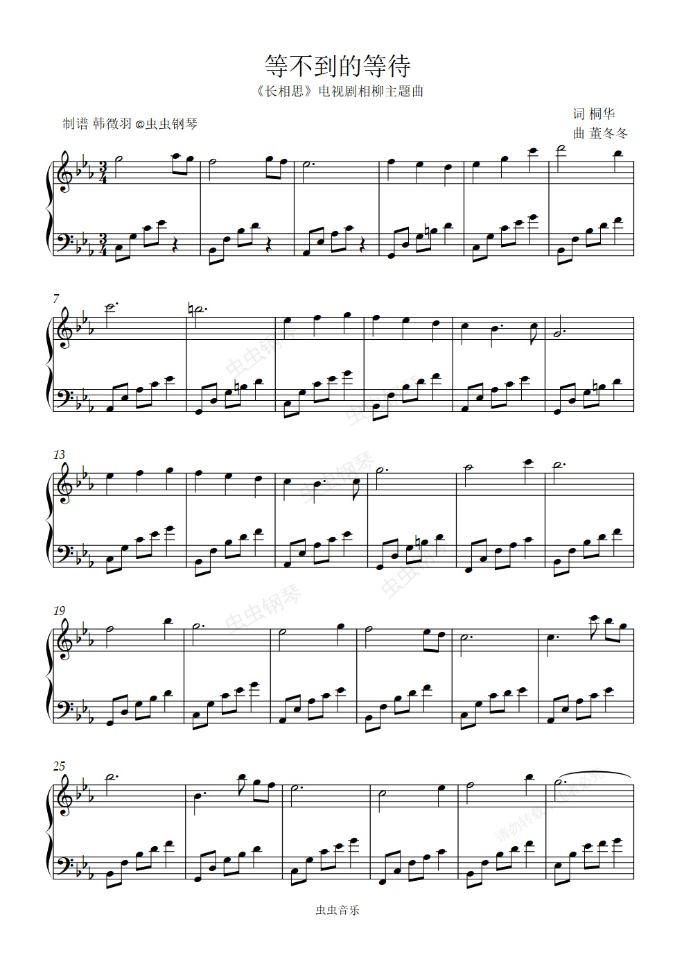 钢琴谱:檀健次 等不到的等待 原调简易动听