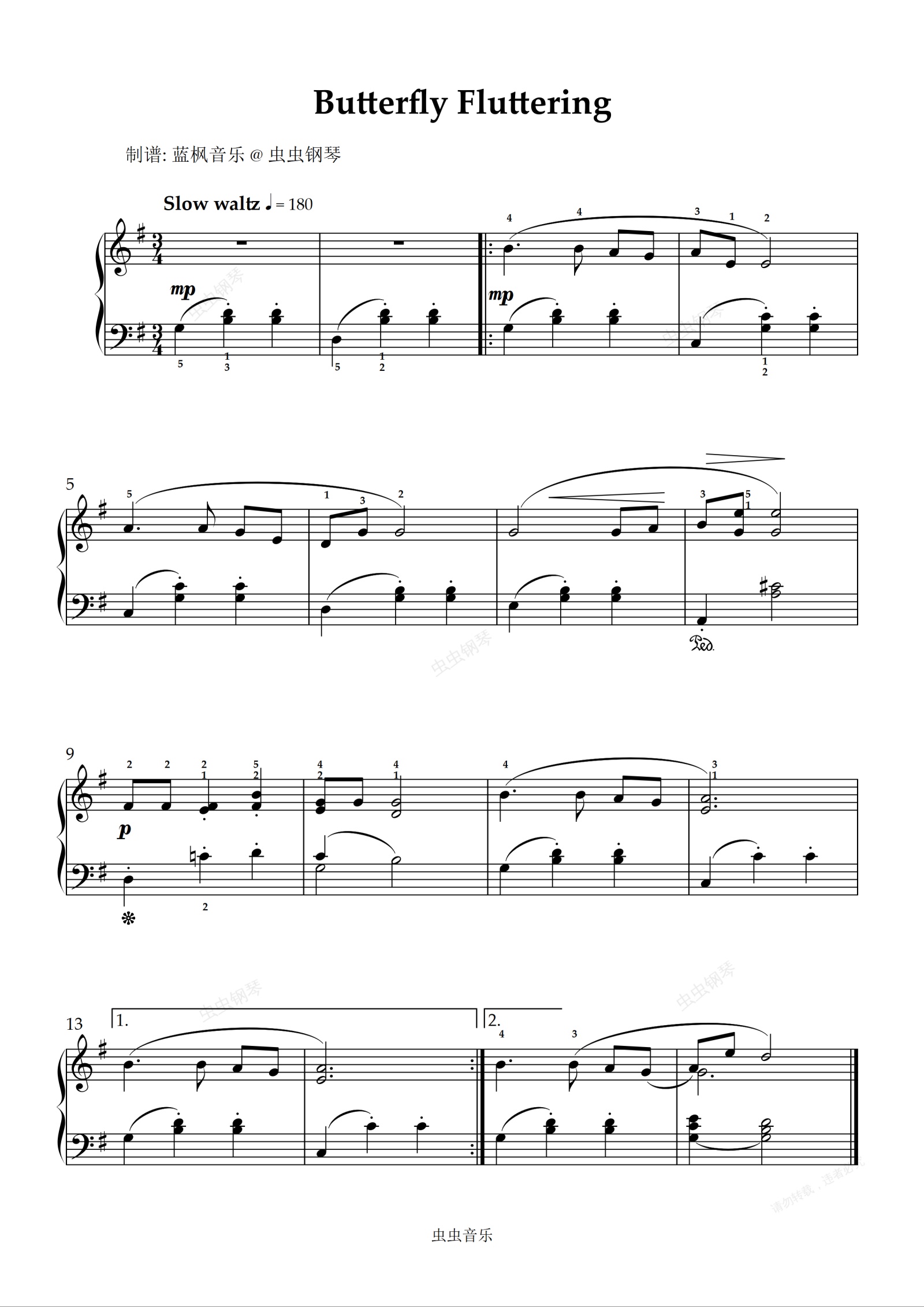 钢琴谱:Butterfly Fluttering