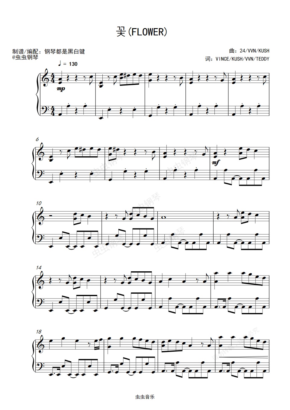 钢琴谱:꽃 (FLOWER) - JISOO 金智秀 【钢琴演奏版】