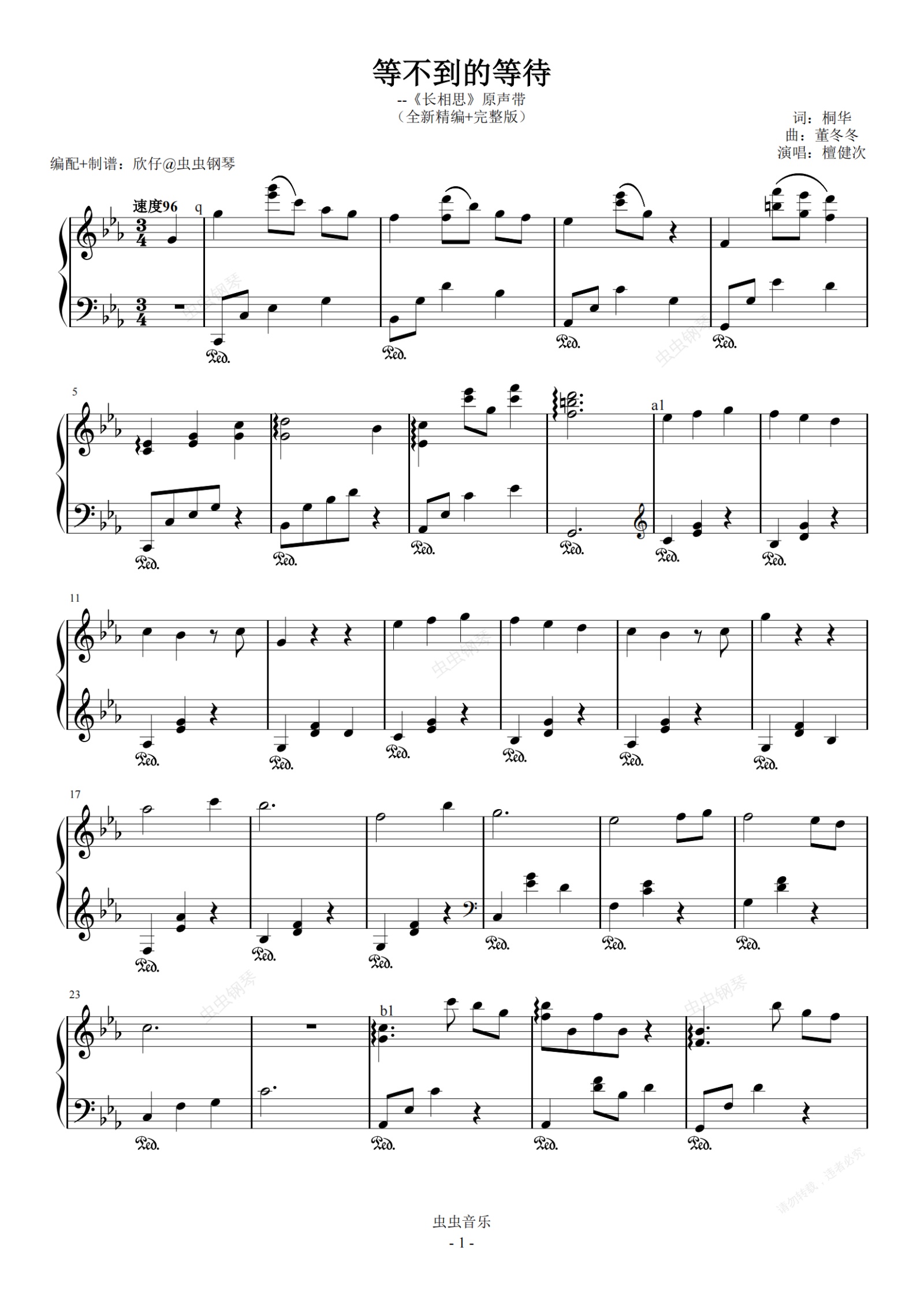 钢琴谱:檀健次-c《等不到的等待》(《长相思》原声带、完整版)