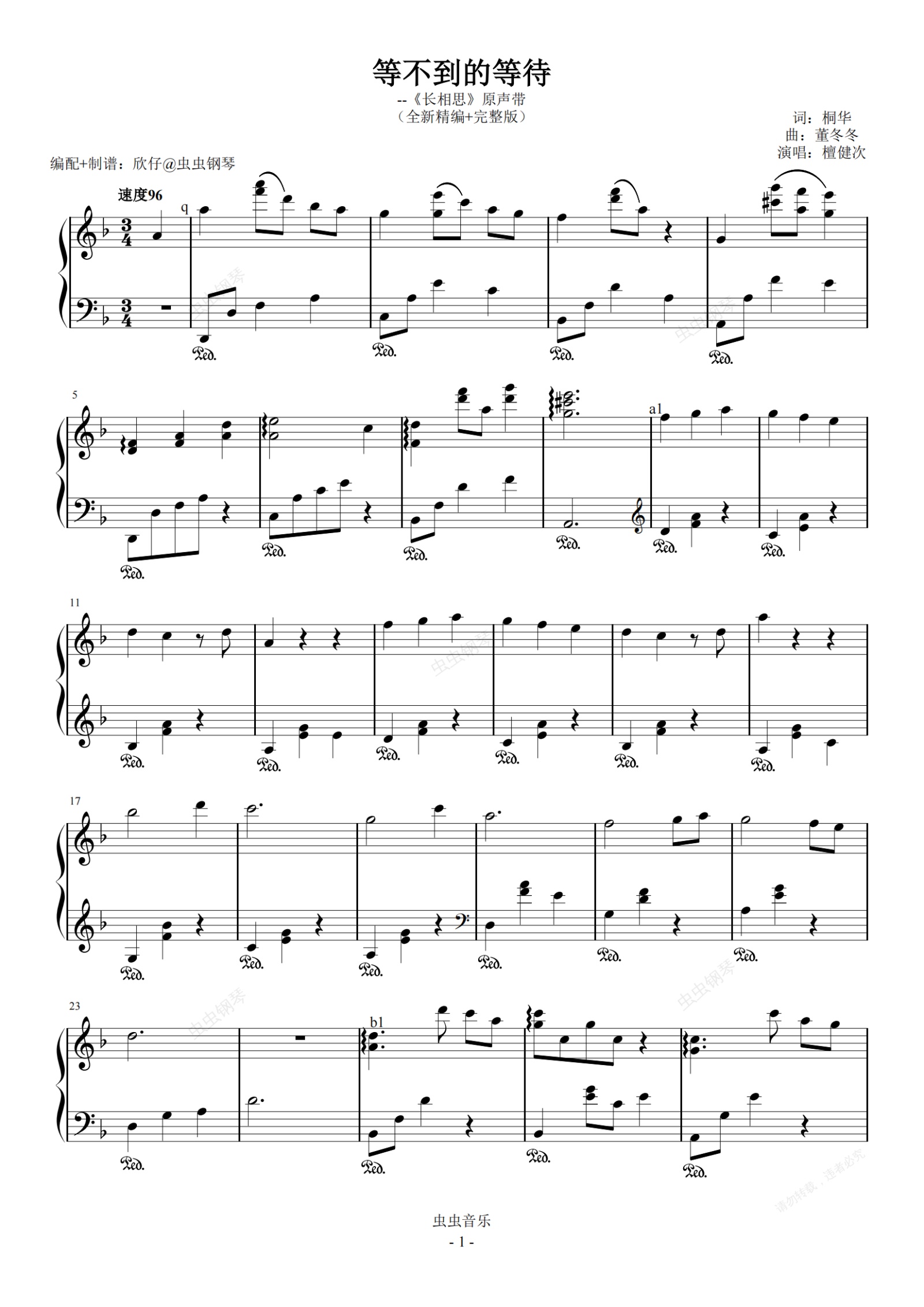 钢琴谱:檀健次-d《等不到的等待》(《长相思》原声带、完整版)