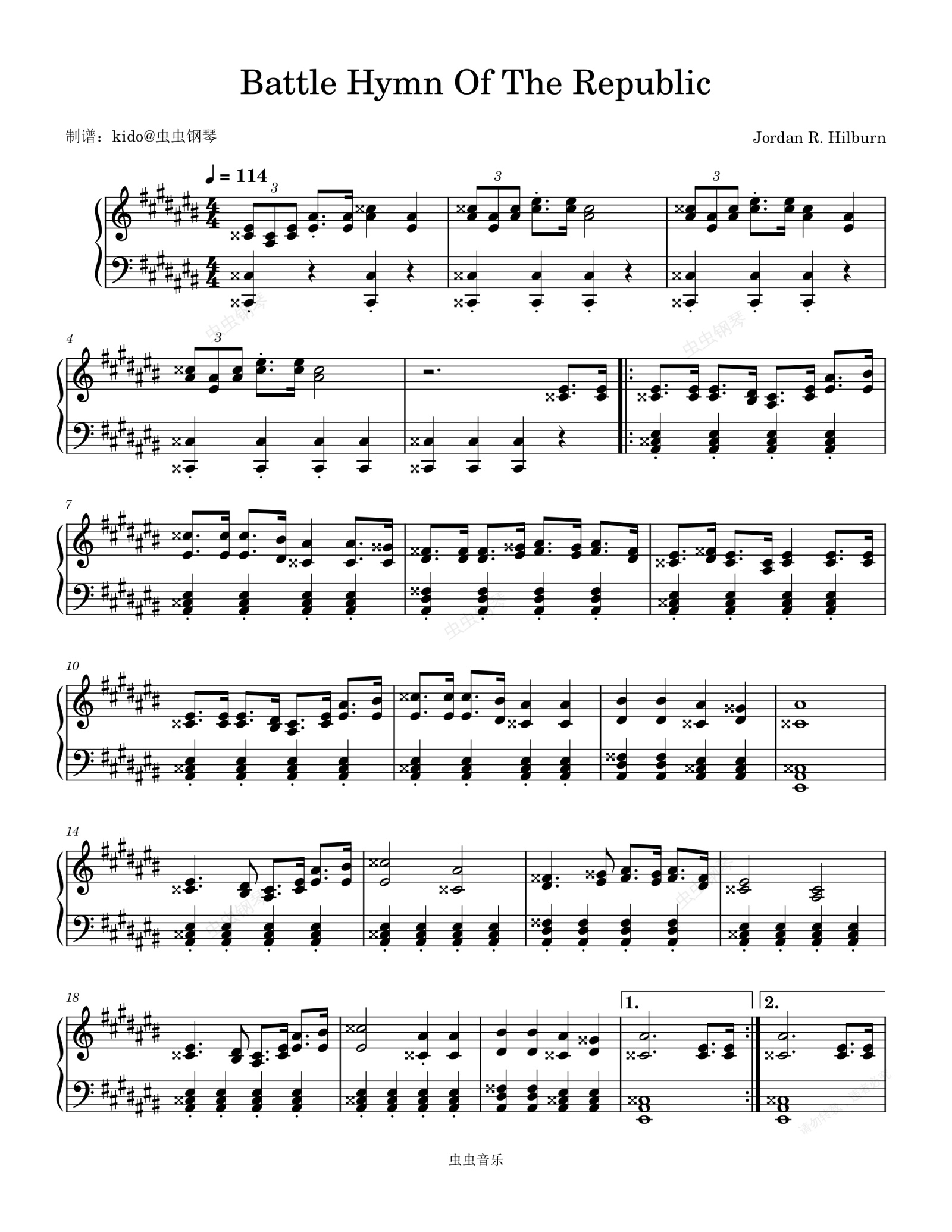 钢琴谱:Battle Hymn Of The Republic Jordan R. Hilburn