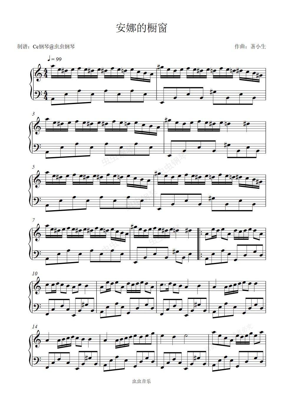 钢琴谱:安娜的橱窗 C调 好听易上手