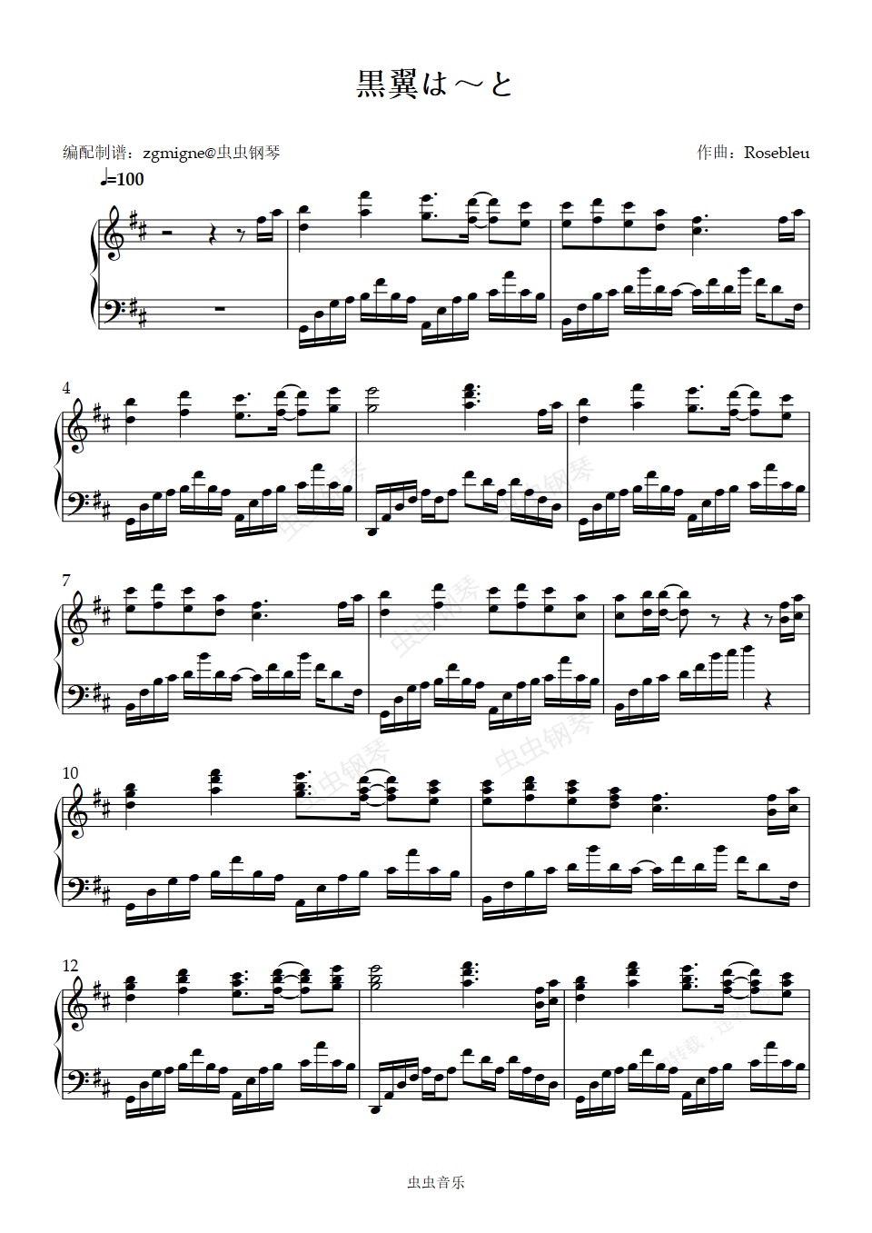 钢琴谱:黒翼は~と 精编 附带原版伴奏改编
