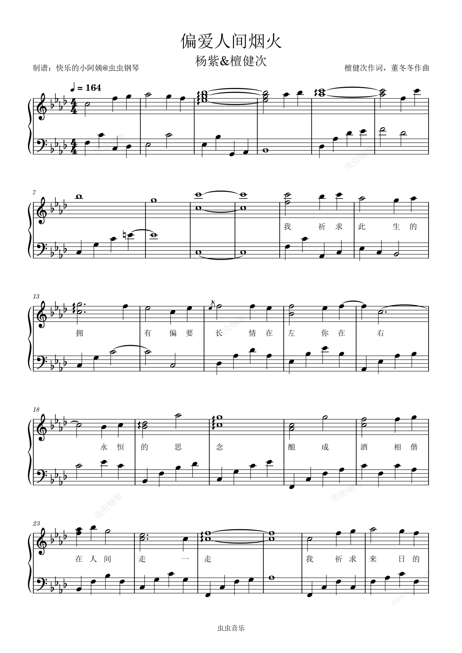 钢琴谱:偏爱人间烟火-杨紫&檀健次-简易带歌词