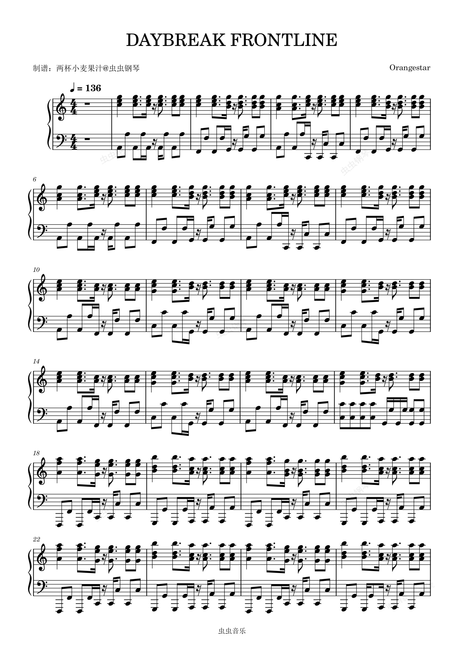 钢琴谱:DAYBREAK FRONTLINE—Orangestar