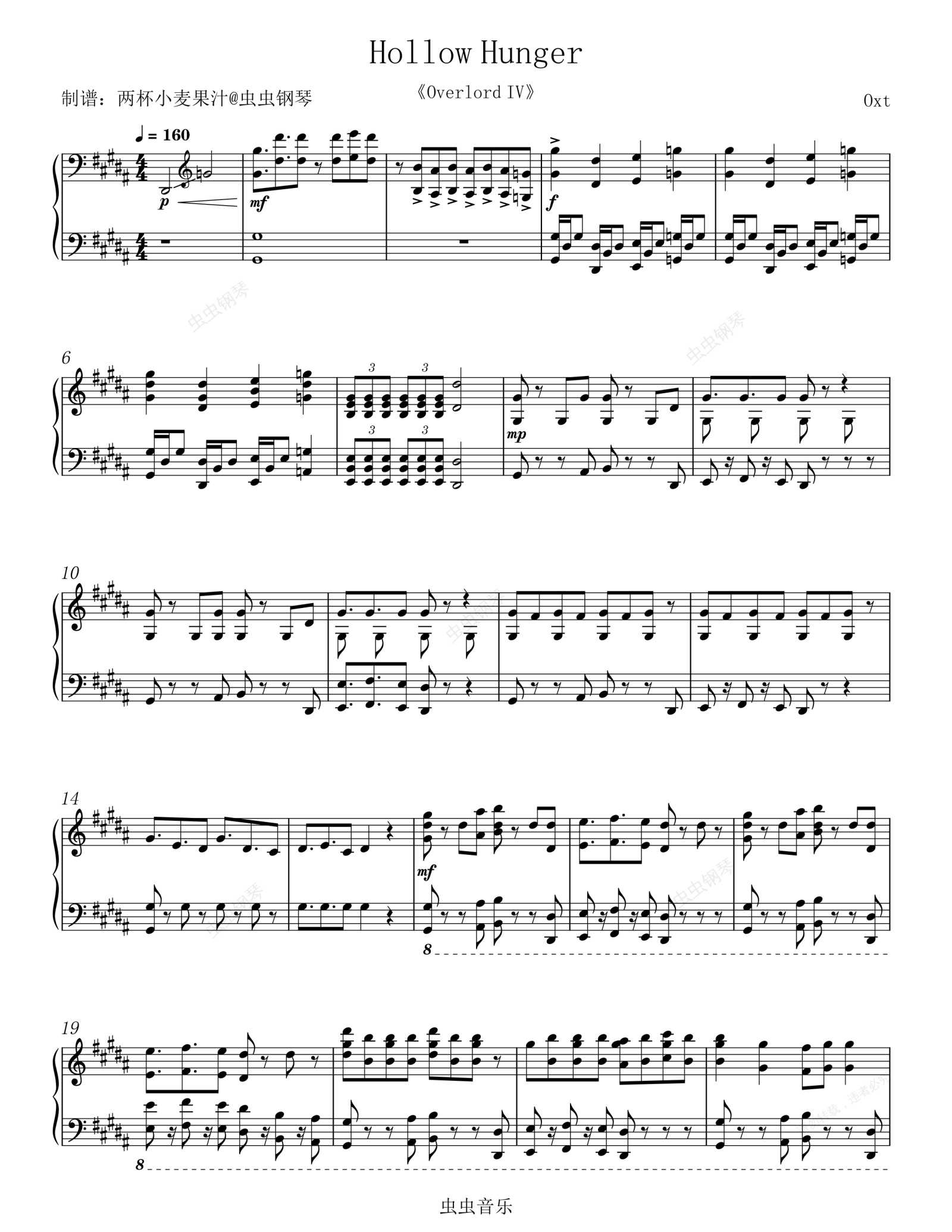 钢琴谱:Hollow Hunger-《Overlord IV》Oxt