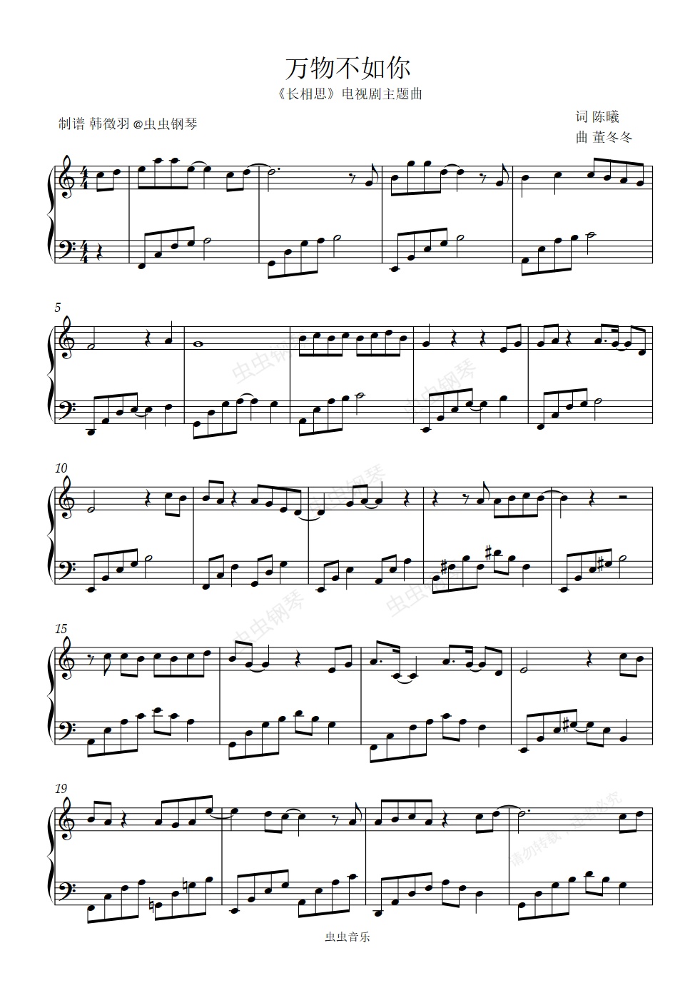 钢琴谱:万物不如你 《长相思》主题曲 C调好听易弹