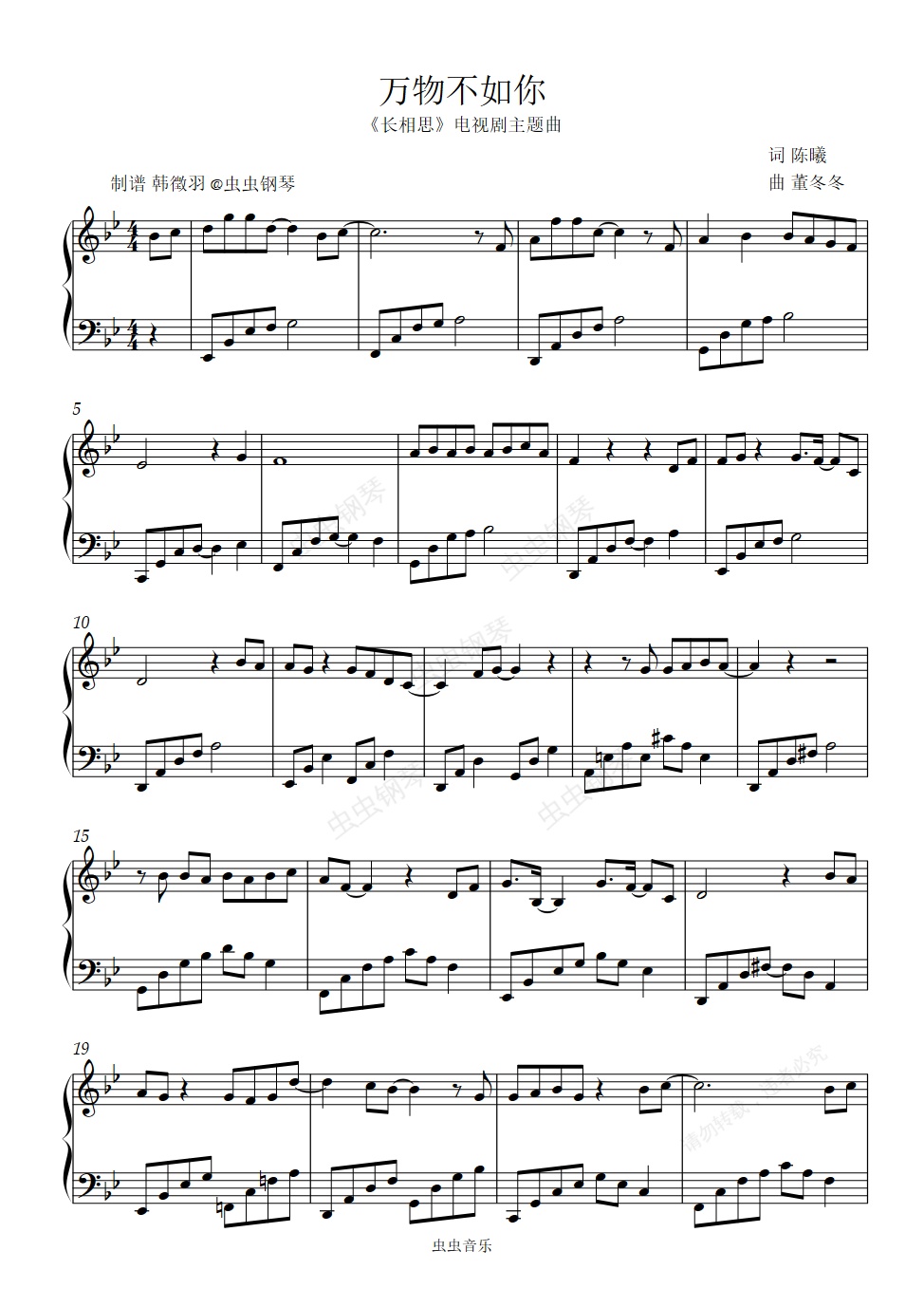 钢琴谱:万物不如你《长相思》主题曲原调简单易弹