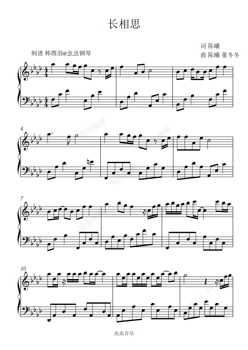 钢琴谱:长相思电视剧同名 郁可唯 C调简单易弹