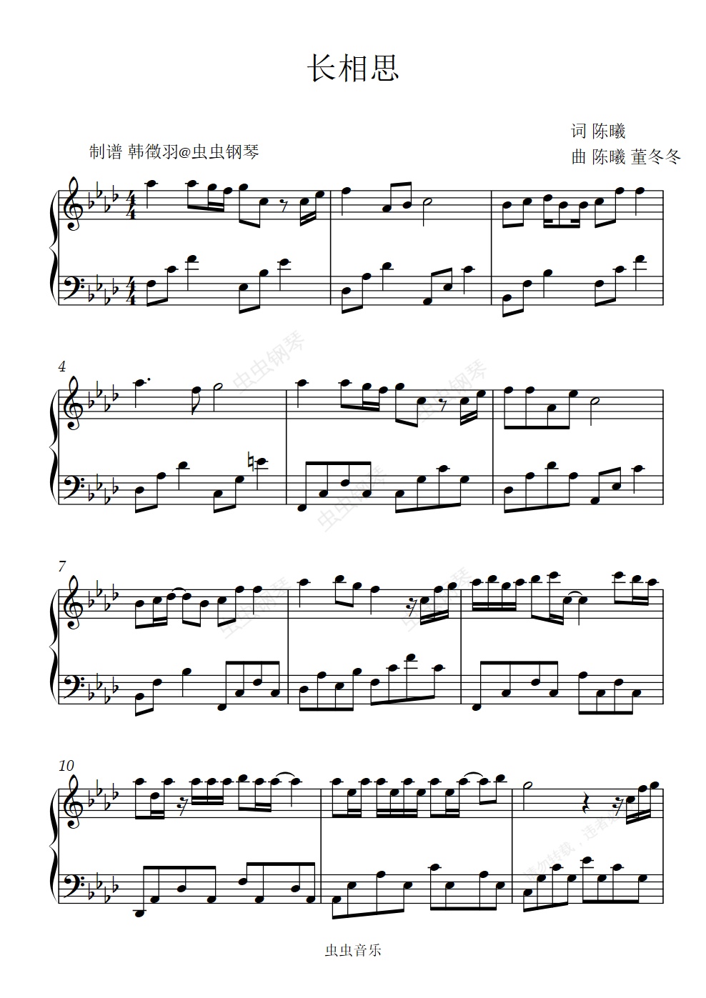 钢琴谱:长相思 郁可唯 原调好听易弹