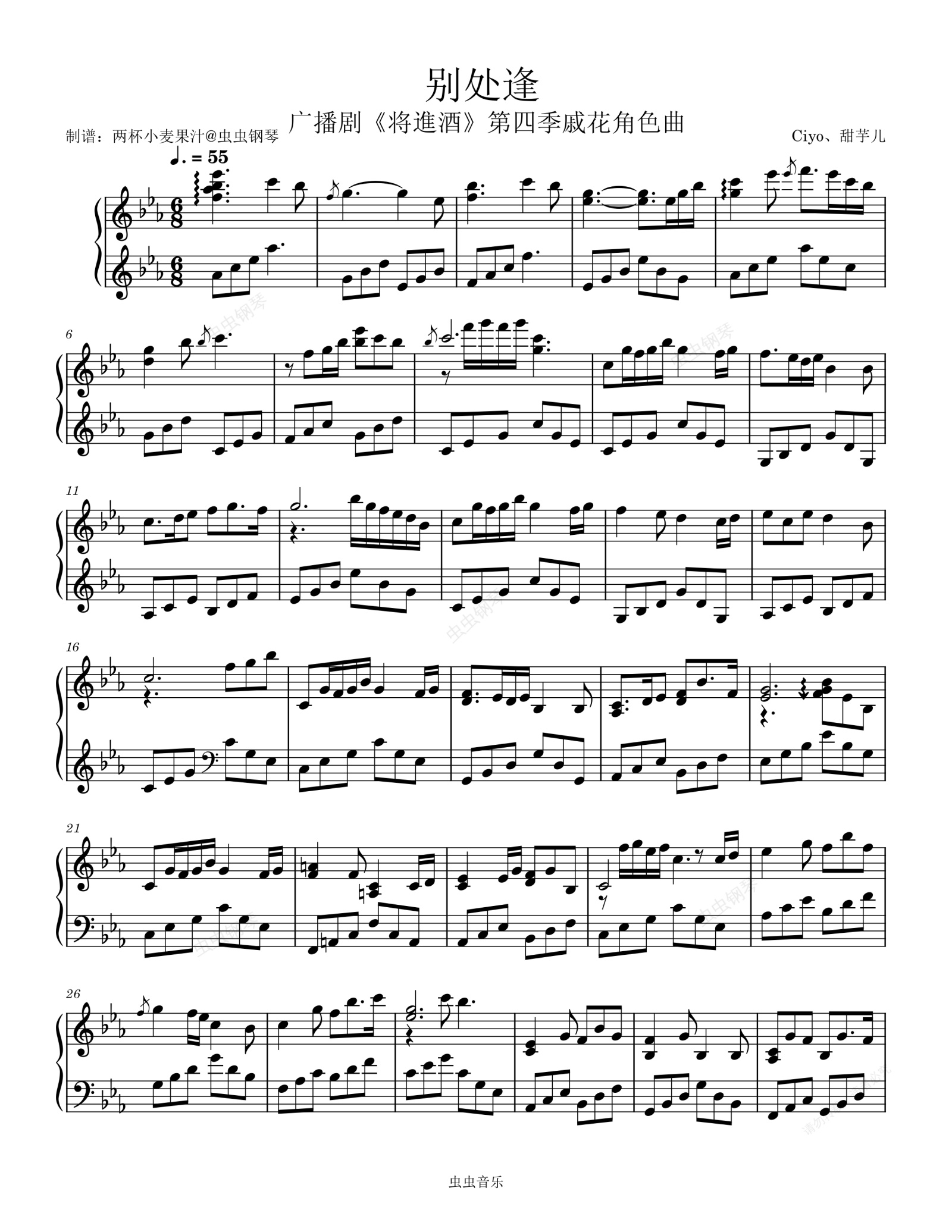 钢琴谱:别处逢—广播剧《将進酒》第四季戚花角色曲