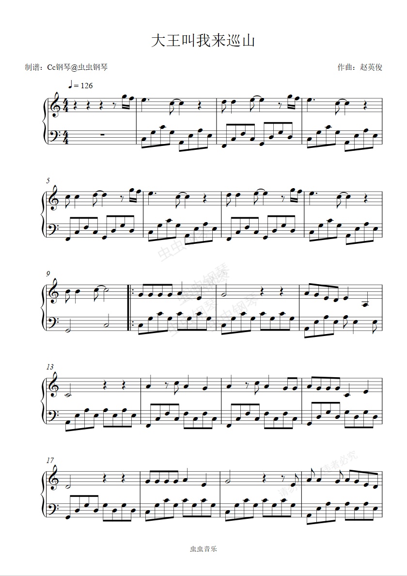 钢琴谱:大王叫我来巡山 C调 好听易上手