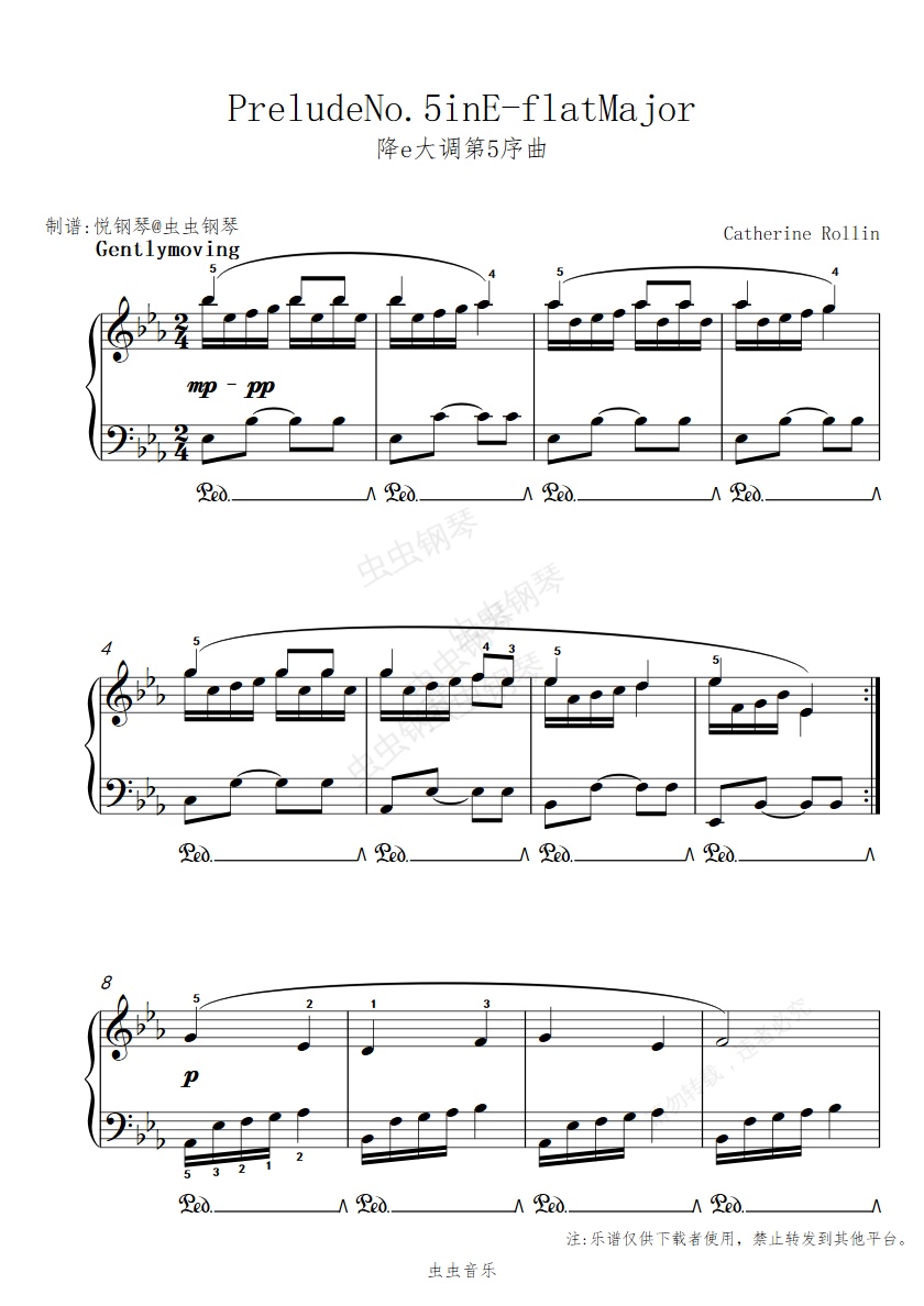 钢琴谱:降e大调第5序曲//PreludeNo.5inE-flatMajor【抒情】
