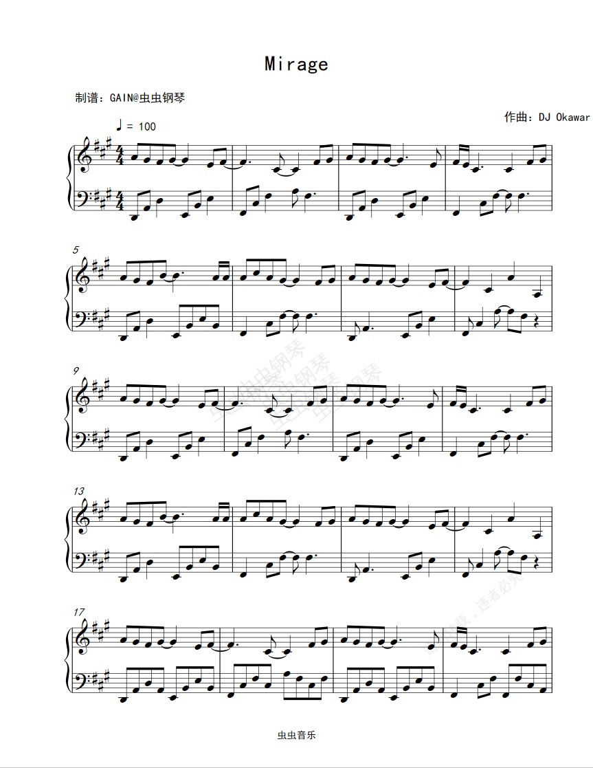 钢琴谱:Mirage-海市蜃楼-DJ Okawari