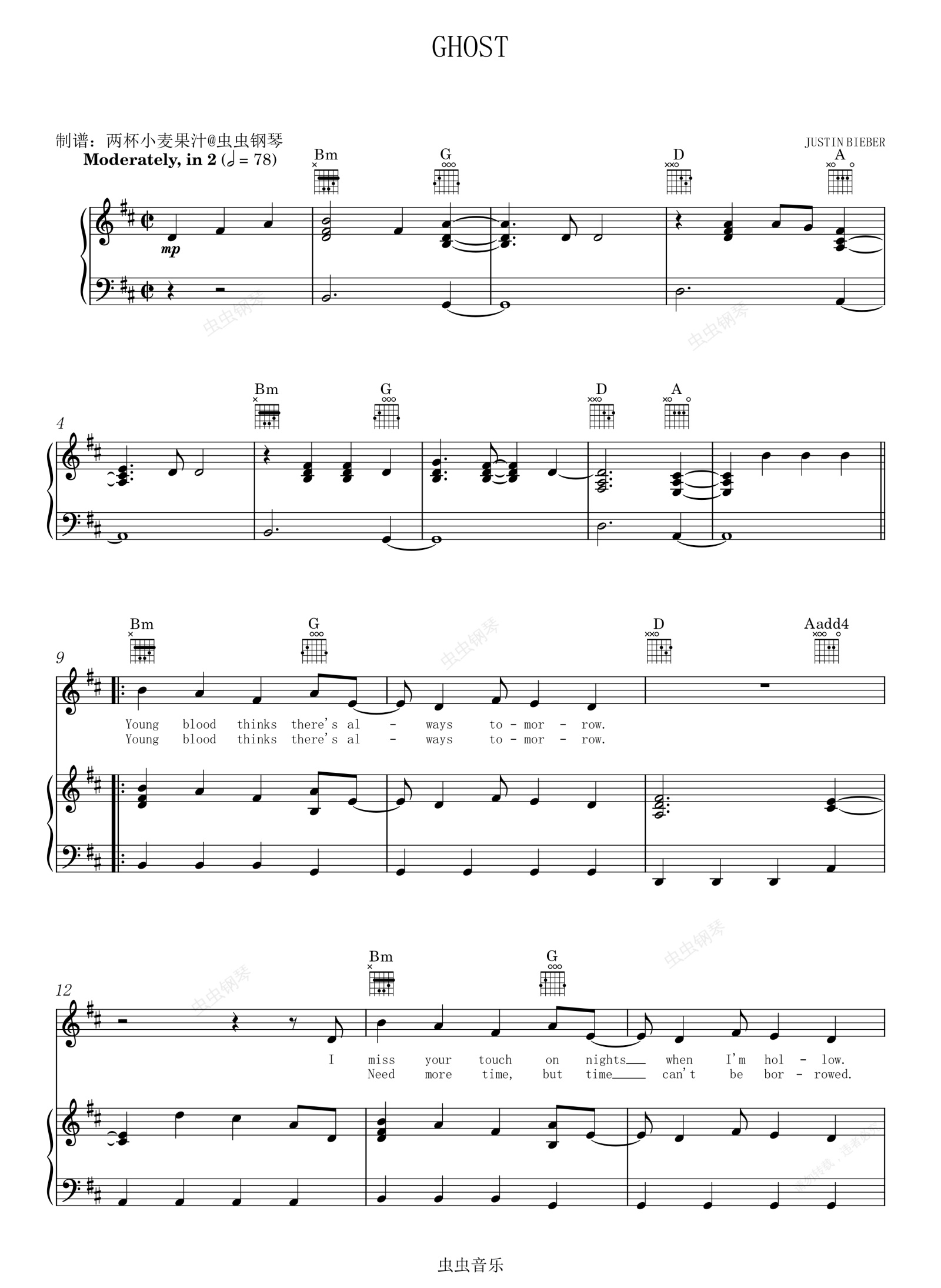 钢琴谱:GHOST-JUSTIN BIEBER