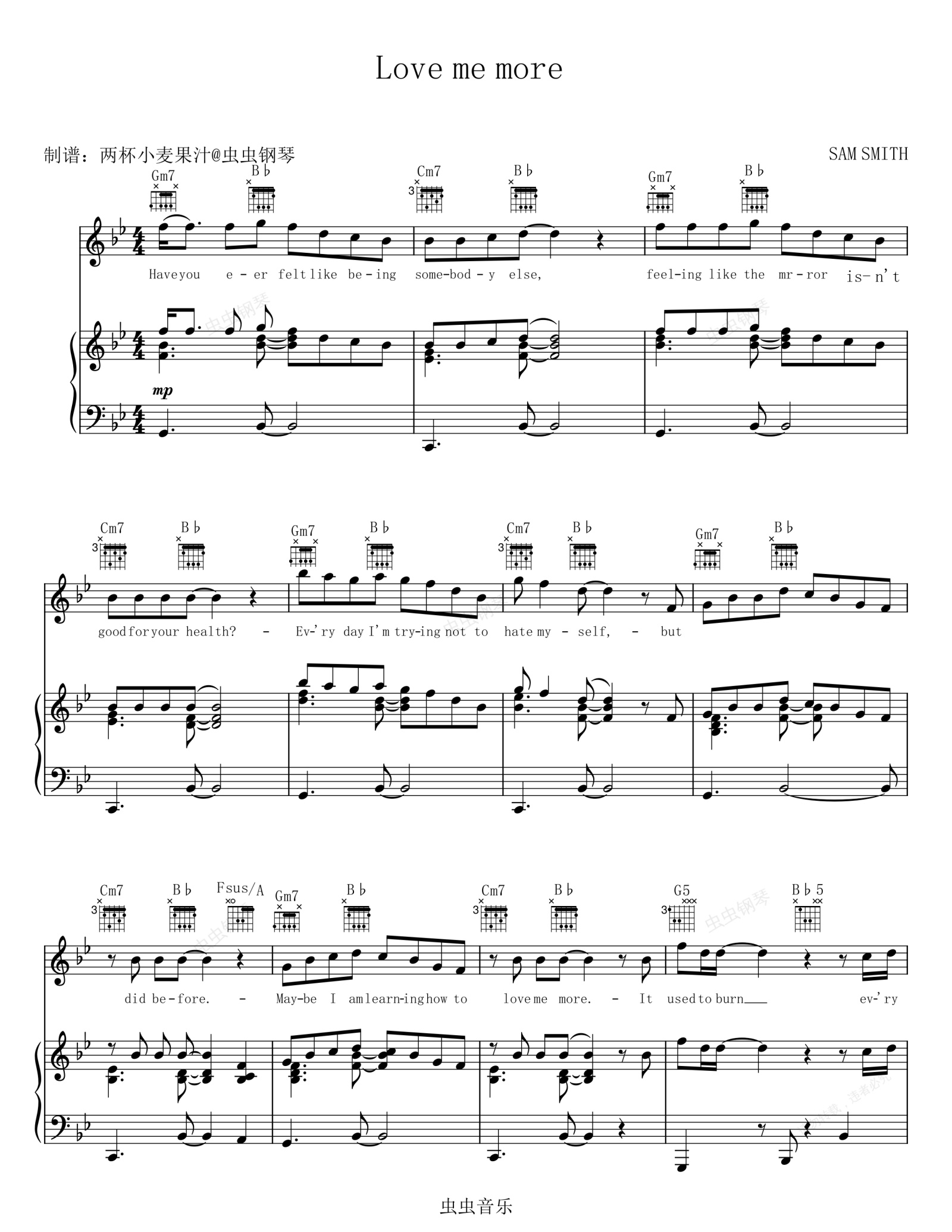 钢琴谱:Love me more-SAM SMITH