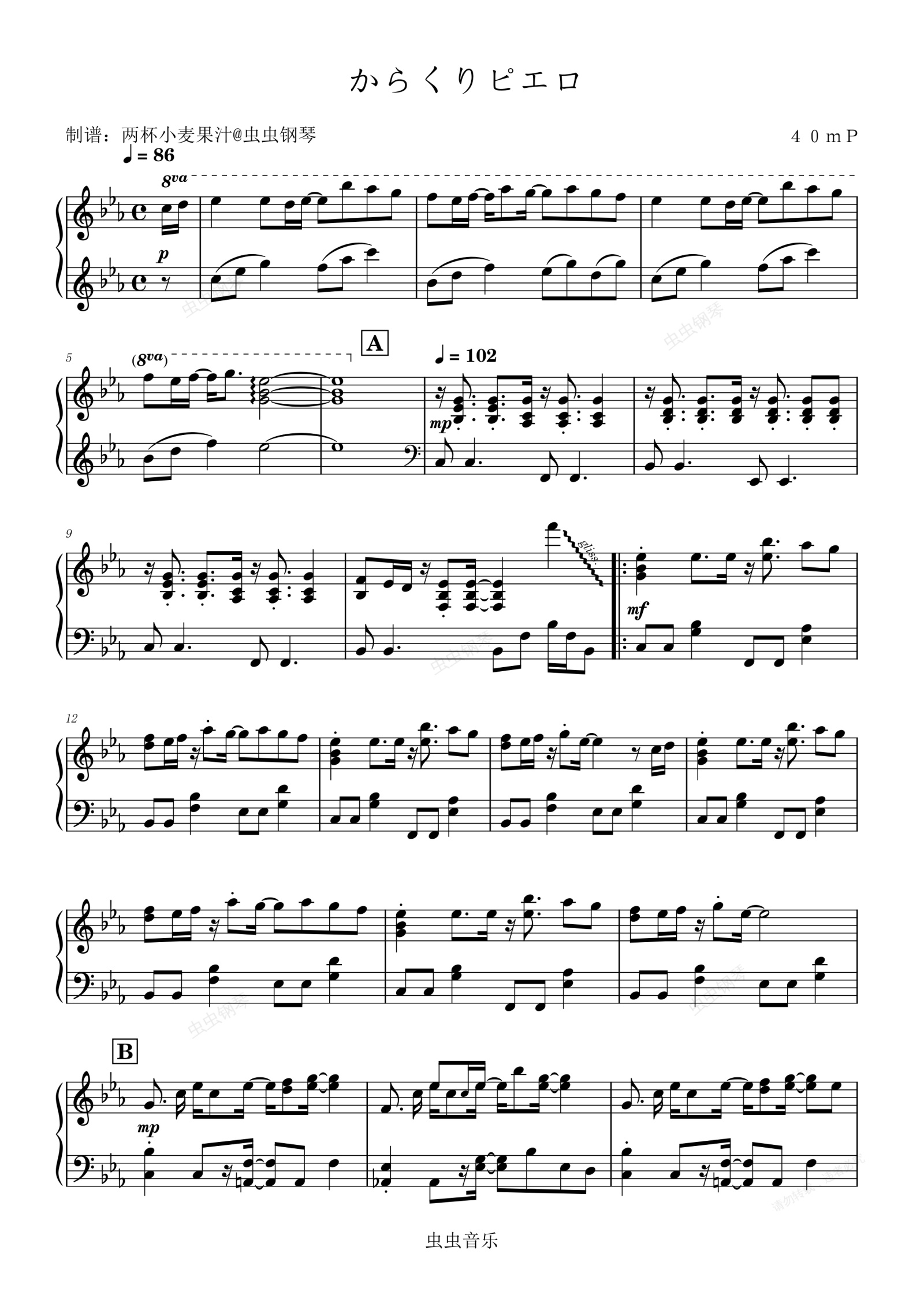 钢琴谱:からくりピエロ(活动小丑)-40mP/初音未来