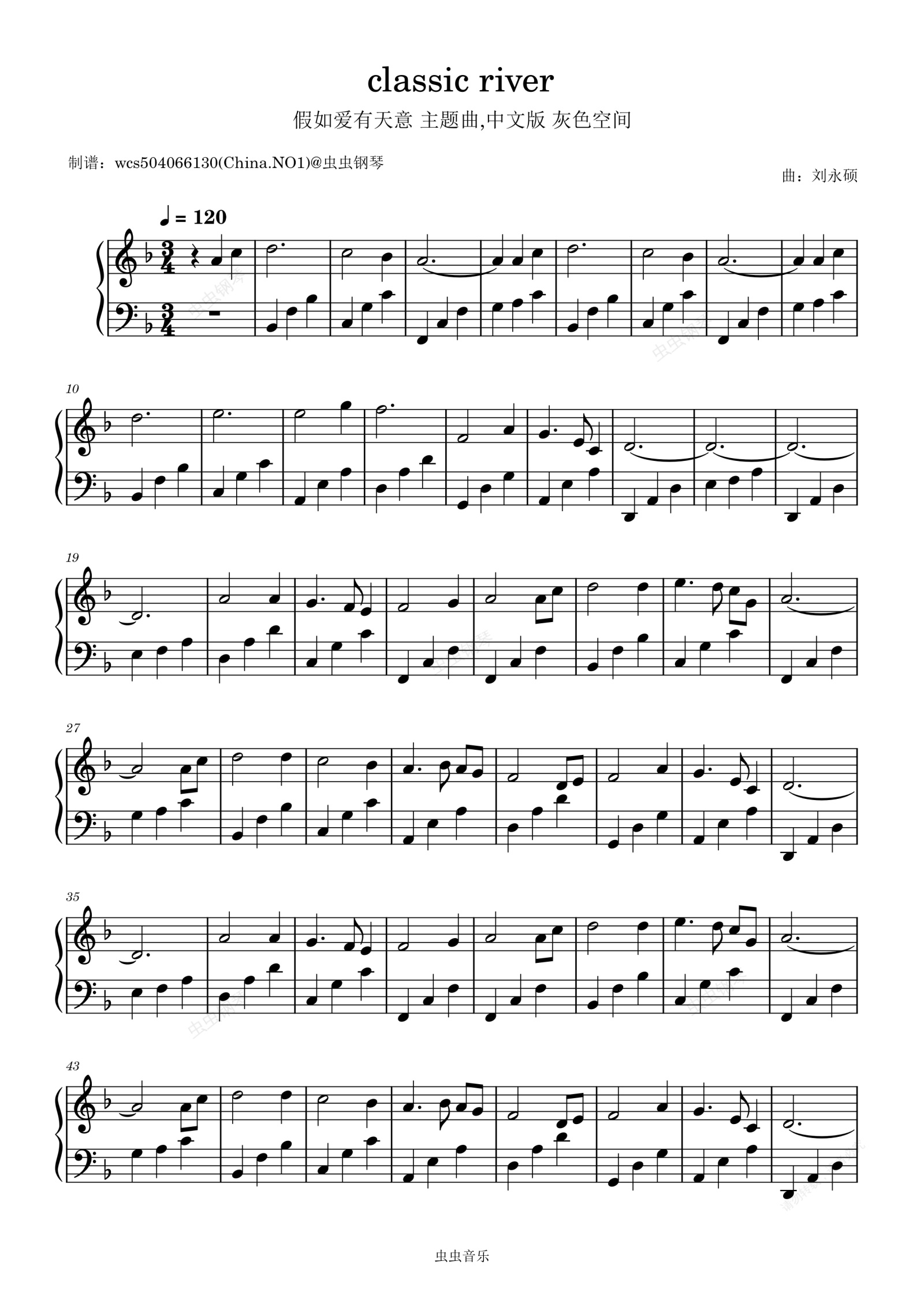 钢琴谱:《classic river》-中文版-灰色空间 假如爱有天意 主题曲
