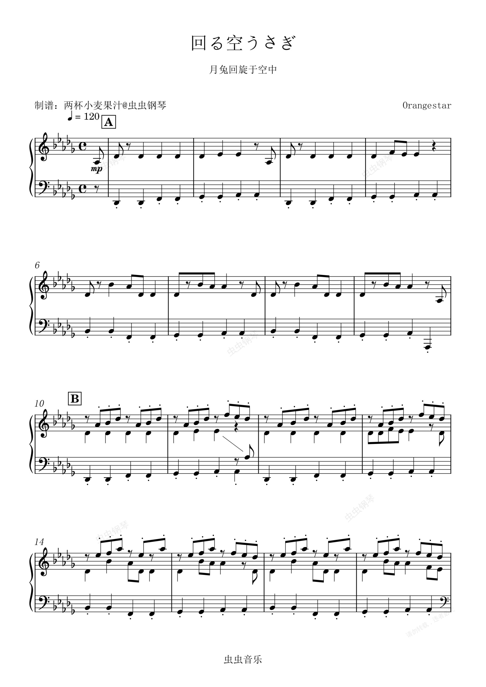 钢琴谱:回る空うさぎ(月兔回旋于空中)-初音未来