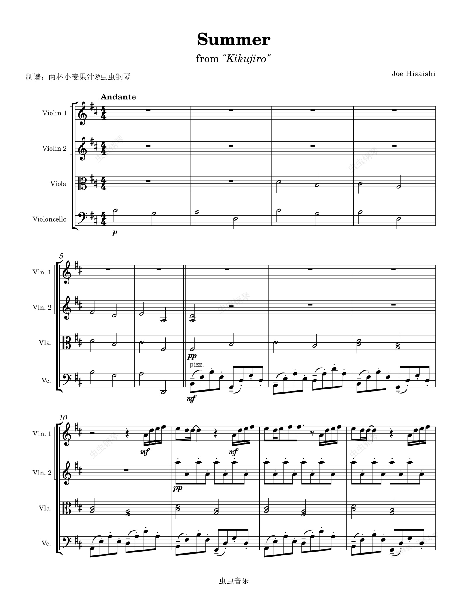 钢琴谱:Summer-电影《菊次郎的夏天》弦乐四重奏