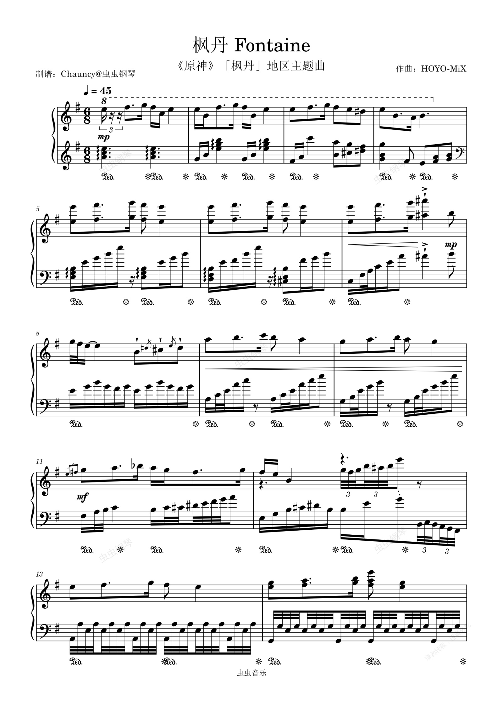 钢琴谱:枫丹 Fontaine(《原神》枫丹地区主题曲)