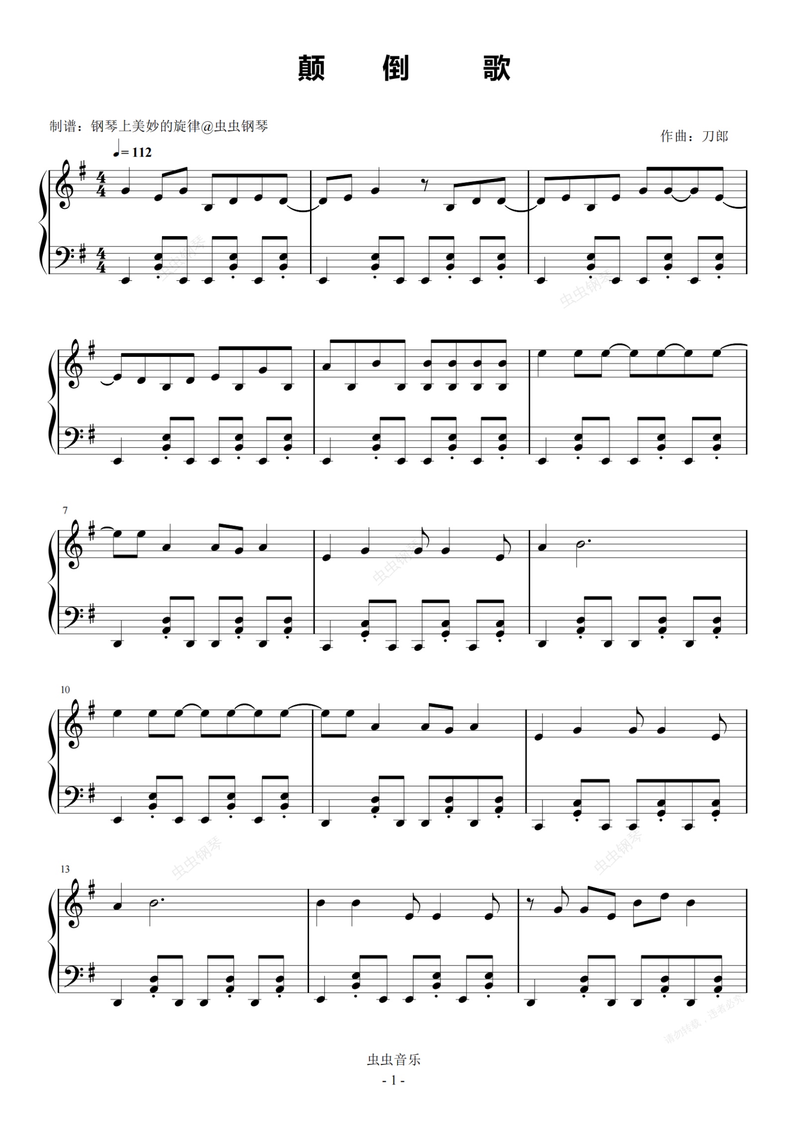 钢琴谱:颠倒歌 原调简易版 刀郎