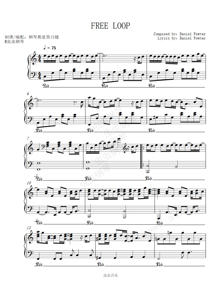 钢琴谱:FREE LOOP - 你一定听过的BGM 【钢琴演奏版】
