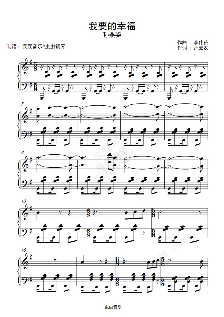 钢琴谱:孙燕姿 - 我要的幸福(简易版)