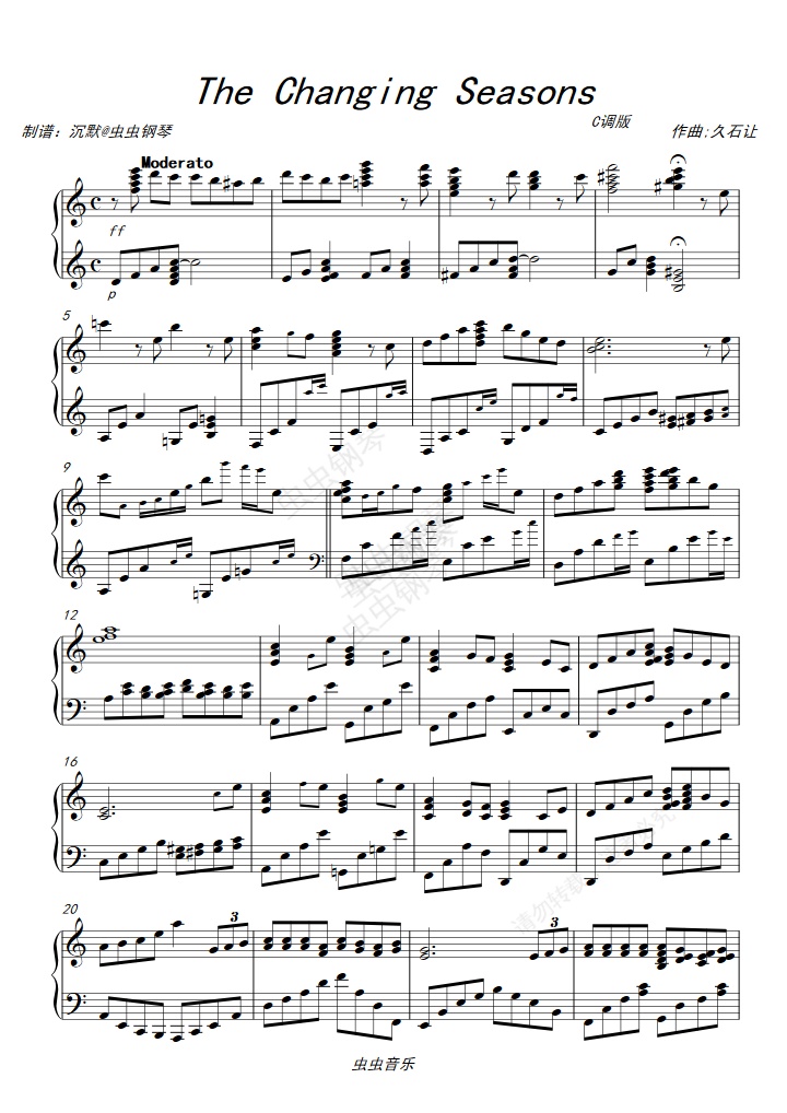 钢琴谱:C调版《四季的更替》-久石让 The Changing Seasons《魔女宅急便》完美C调