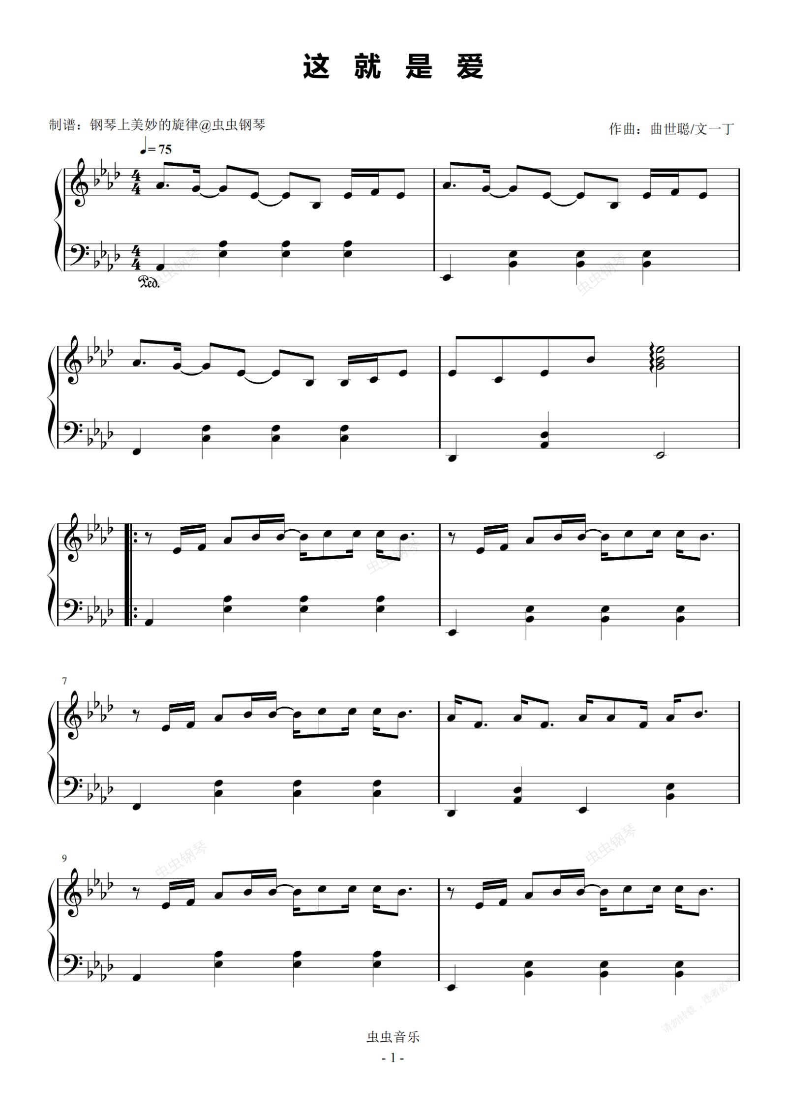 钢琴谱:这就是爱 原调简易版 张杰