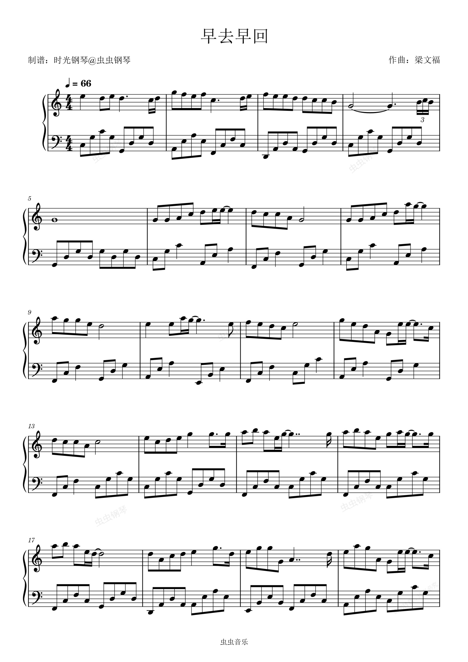 钢琴谱:早去早回(C调简易版)陈洁仪